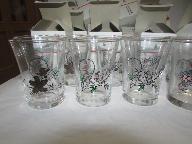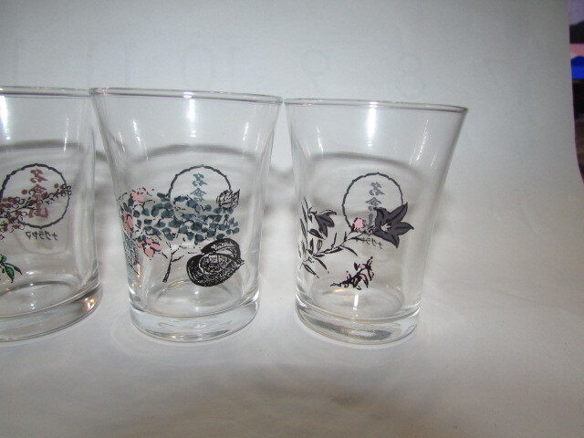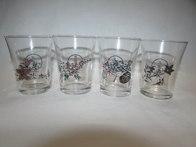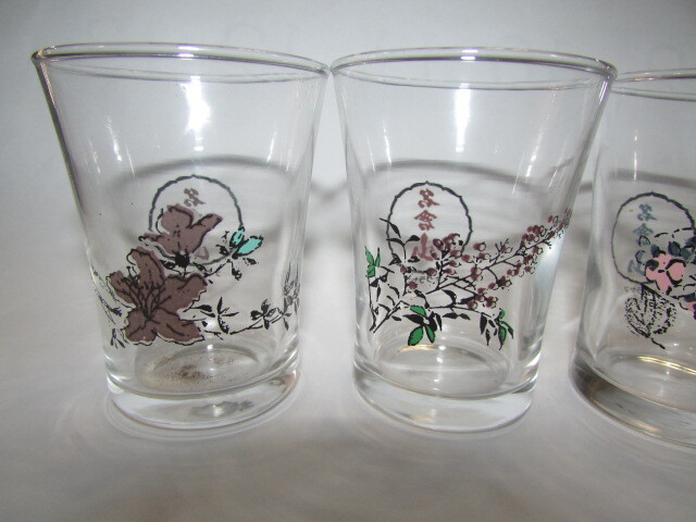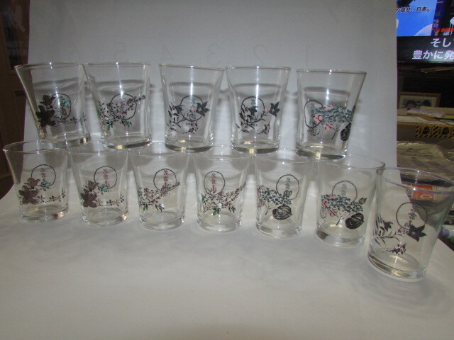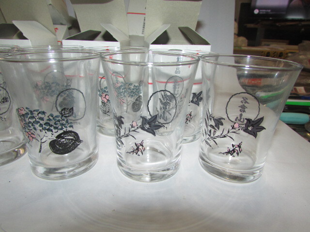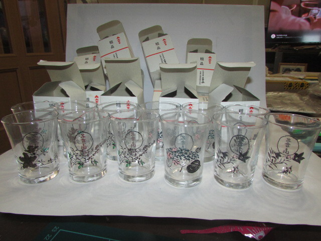即決商品(酒屋・蔵出し)名倉山酒造清酒粗品(レトロなガラスのお猪口・4種12客)NO2・昭和レトロ 未使用