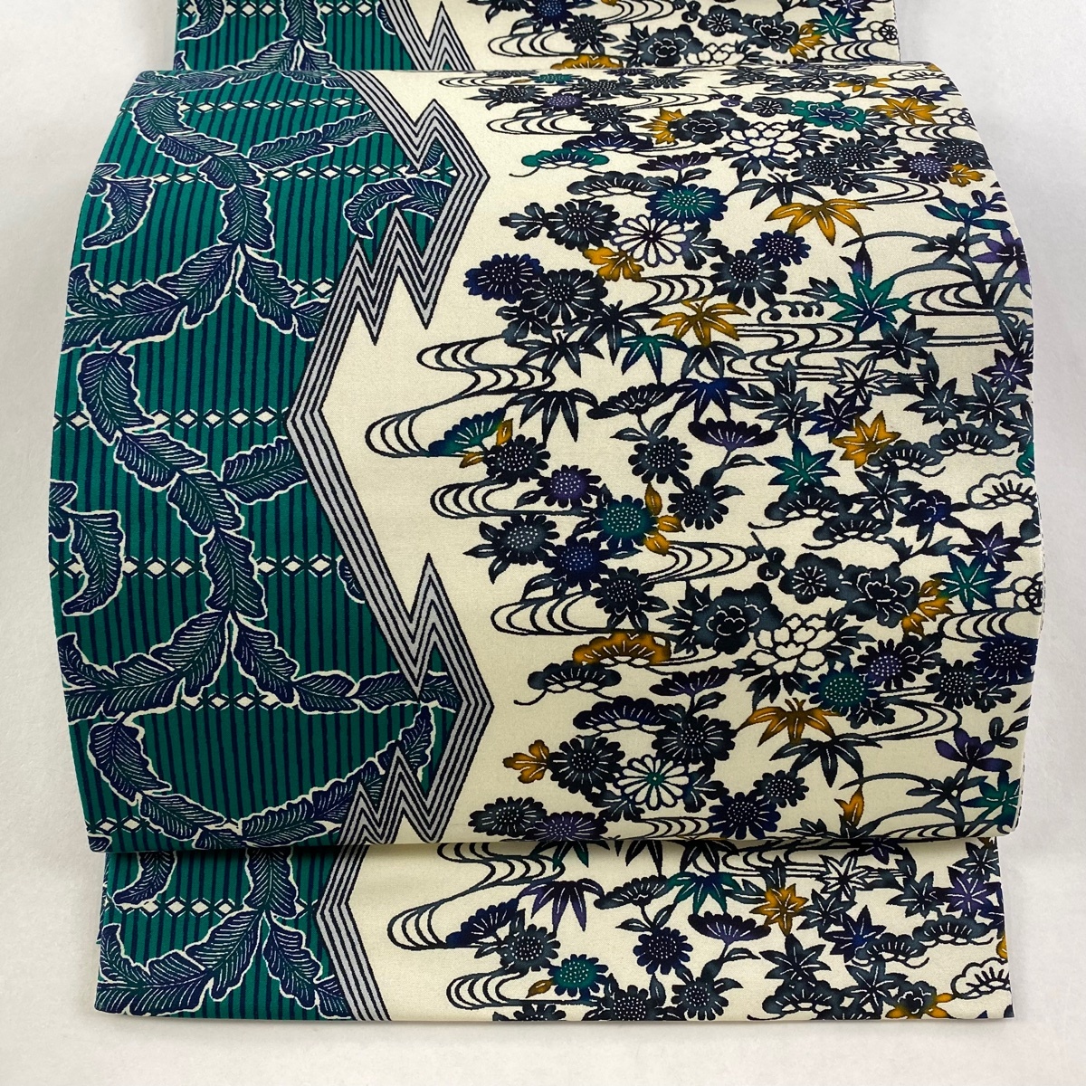| 袋帯 美品 逸品 草花 流水 クリーム 全通 正絹 【中古】 |