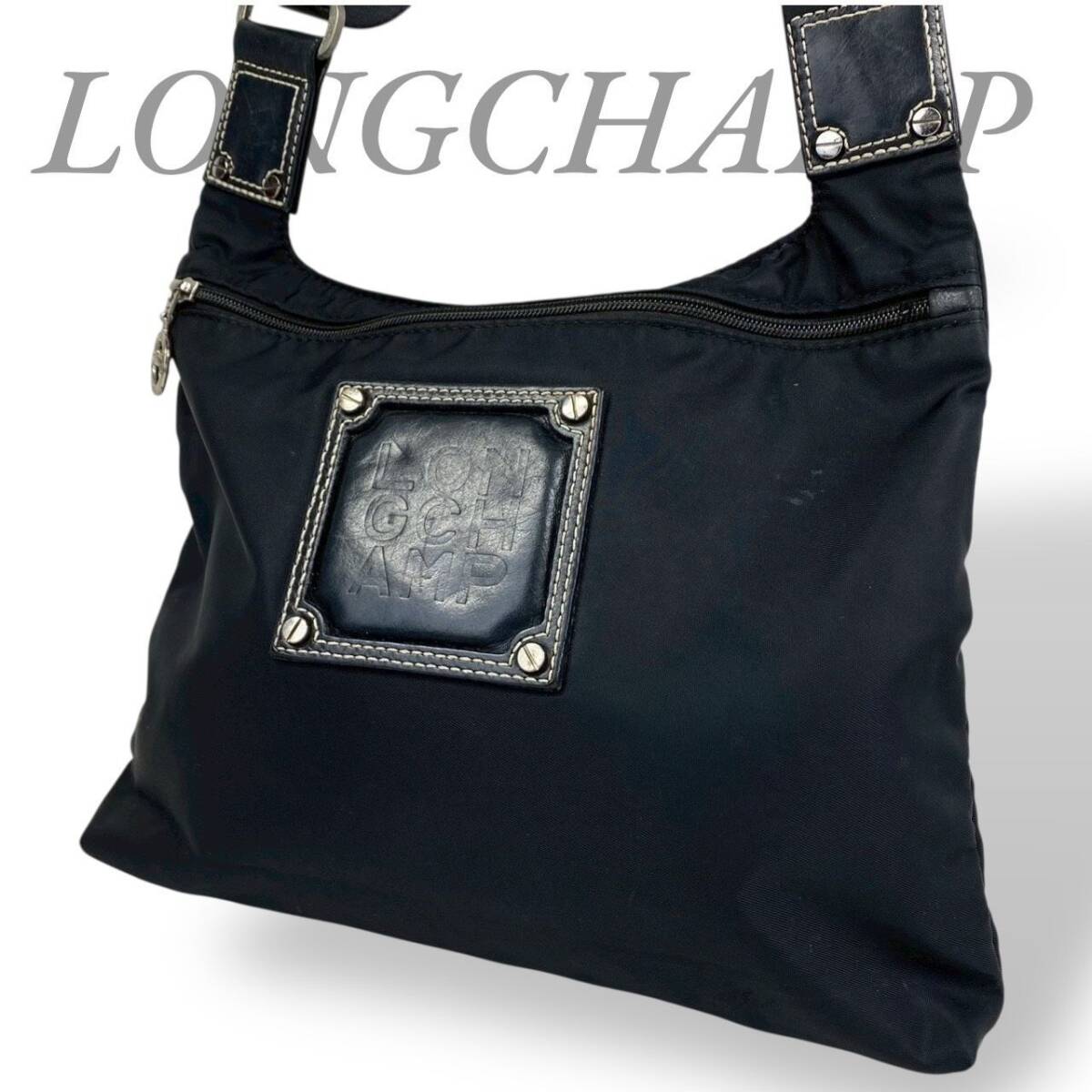 【B3637】 LONGCHAMP ロンシャン ショルダーバッグ ナイロン 斜め掛け クロスボディーバッグ ブラック ロゴ金具 ユニセックス