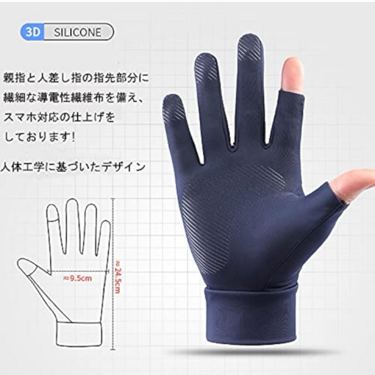 【通気性抜群&タッチパネル対応】肌に優しい柔らかなアイスシルクを採用して、優れた吸湿性で汗をよく吸って通気性がよく、蒸れなくサラサラとしたつけ心地で快適にご使用いただけます。親指と人差し指の指先部分に繊細な導電性繊維布を備え、スマホ対応の仕上げをしておりますので、手袋を外さなくてもスマホやタブレットなどのタッチパネルを操作できる便利なUV手袋です。