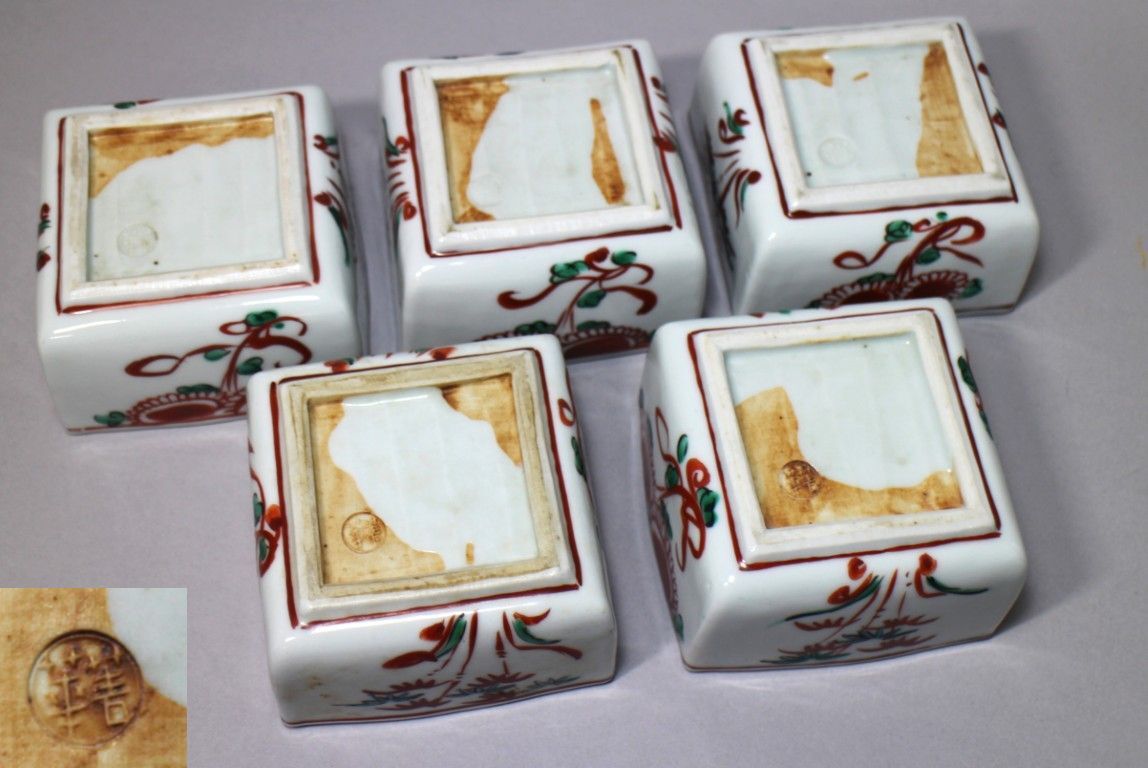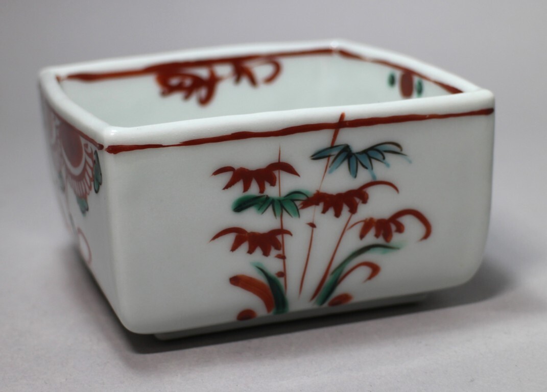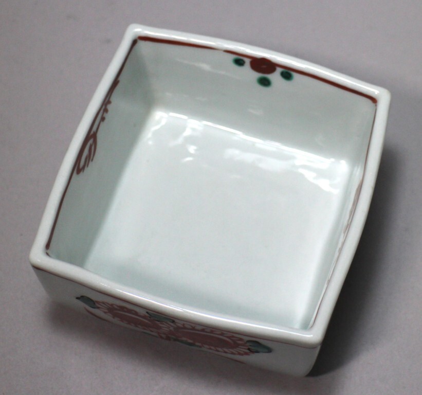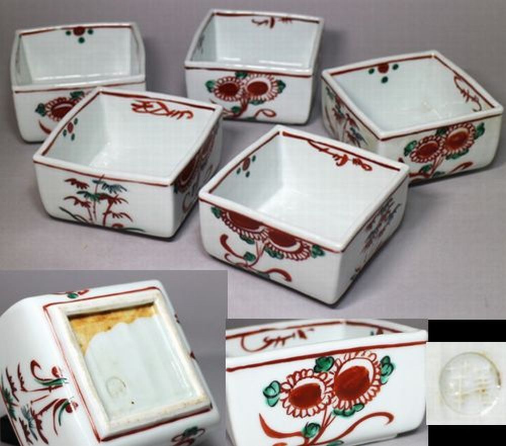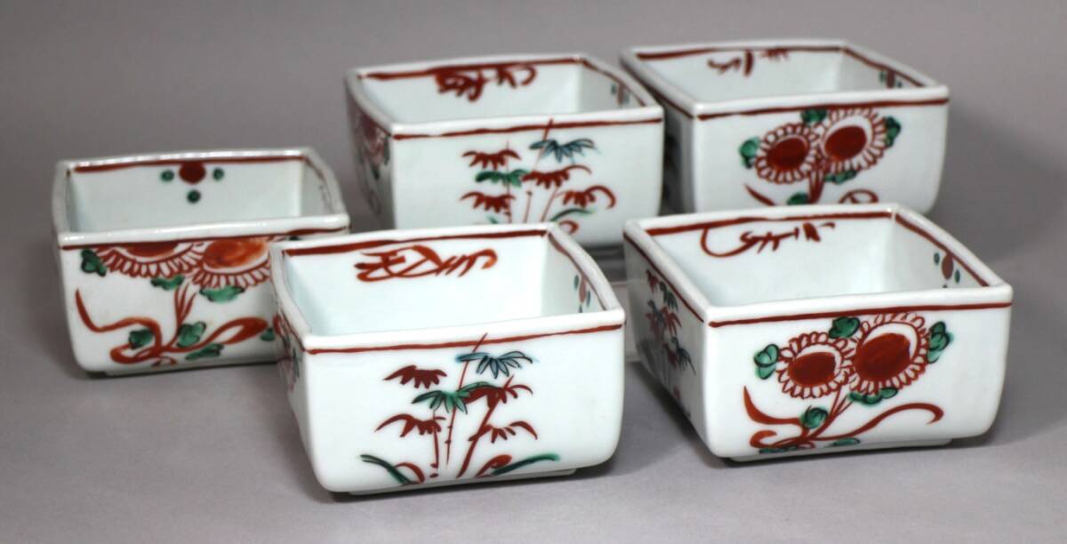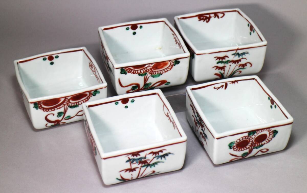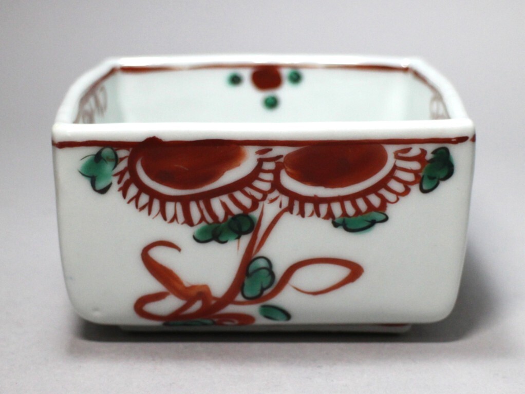 | 須田菁華 赤絵草花絵付四方鉢 向付 5客 懐石料理 |