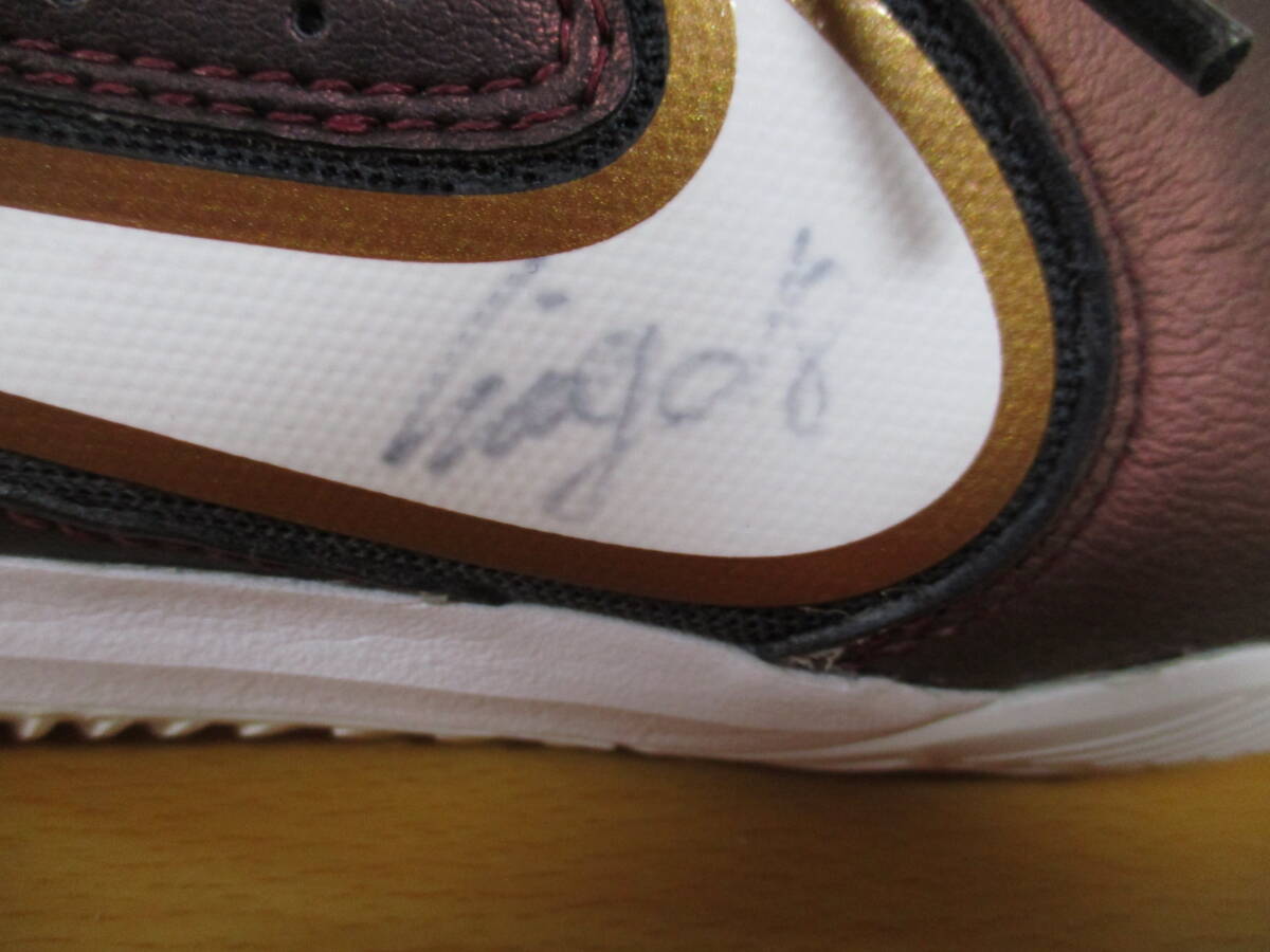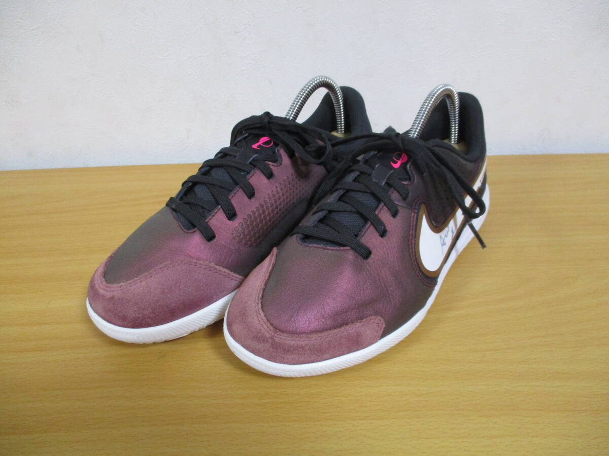 未使用近し!ナイキ★サッカー用<スエードトレーニング・シューズ>★22.5cm パープル・白・黒 サイン入り