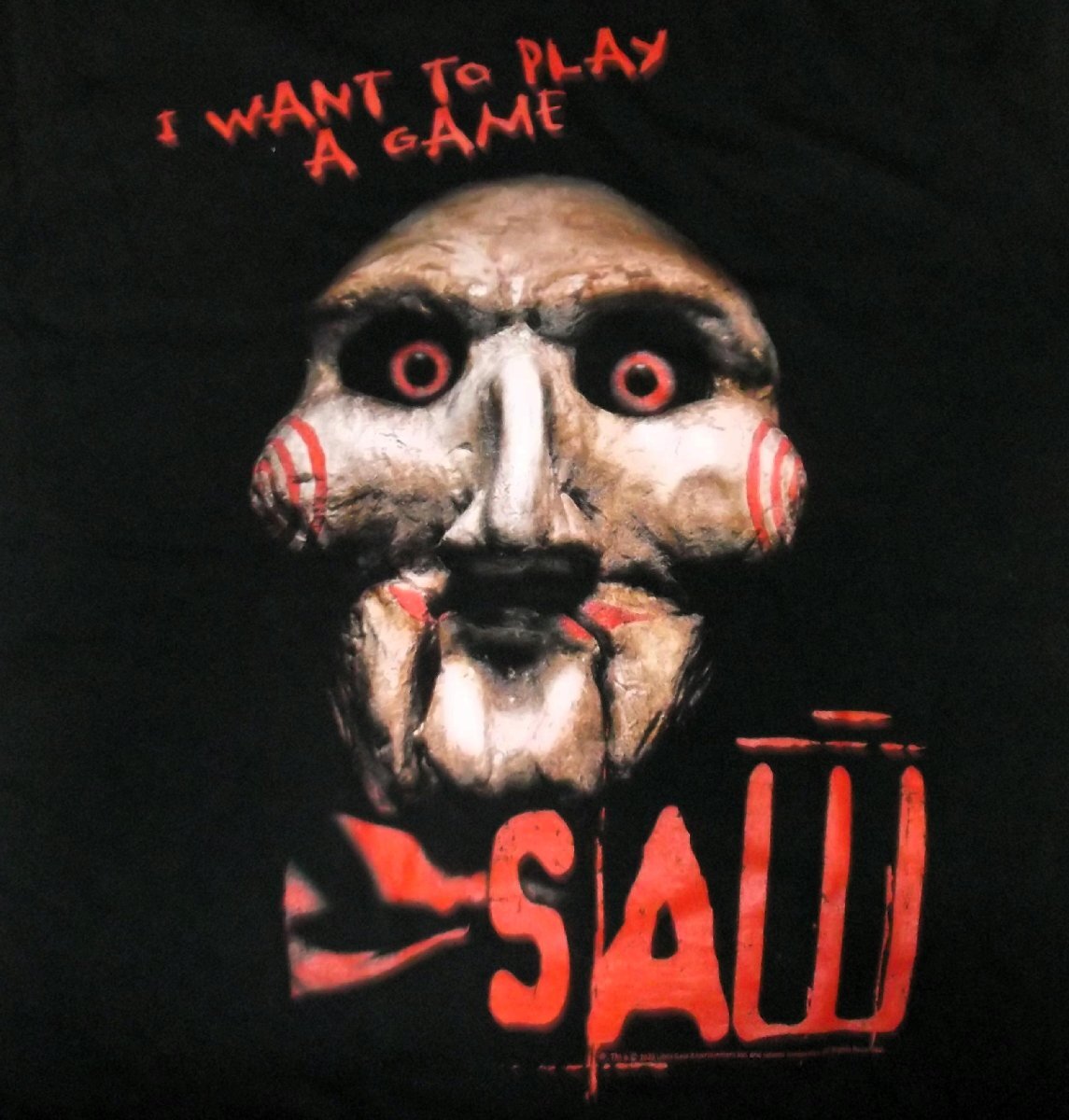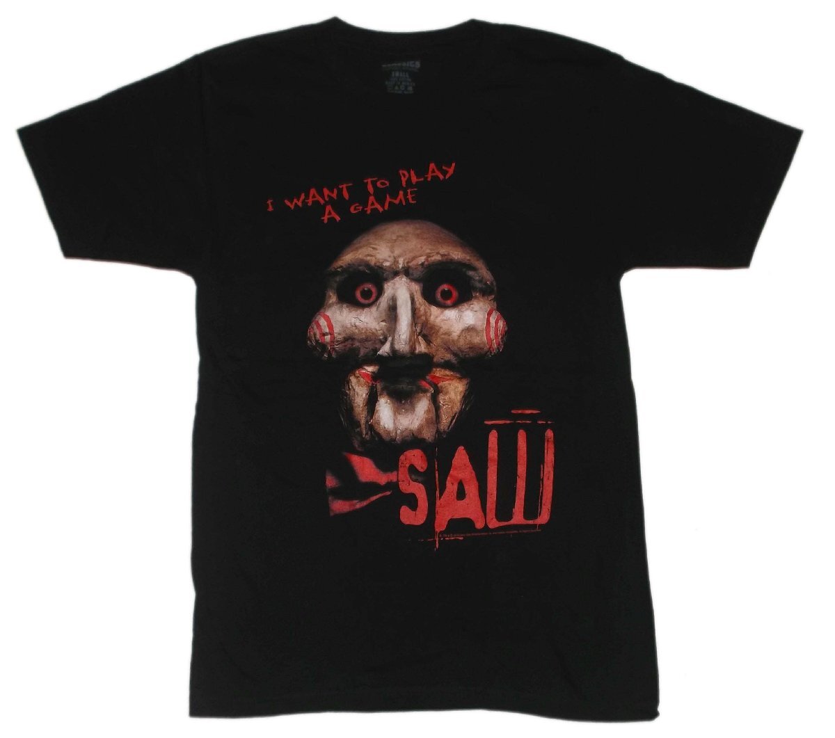 | SAW I WANT TO PLAY-BLACK TSHIRT 正規品 This is the highest quality, officially licensed pop culture merchandise available! Machine wash cold with like colors, dry low heat. 100% authentic + verified product. This premium t-shirt is made of lightweight fine jersey fabric. Lightweight, classic fit, double-needle sleeve and bottom hem. ジェームズ・ワン監督の長編映画デビュー、2004年米国ホラー映画「ソウ」の「BAD : I WANT TO PLAY」です。 世界で最も成功したホラー映画シリーズとしてギネスブックにも認定された「ソウ」シリーズは、犠牲者の生きる力を試す「ジグソウ・キラー」の謎を軸に、非線形のストーリーが展開 賛否両論の評価を受けながらも全世界で1億ドル以上の興行収入を記録し、現在もシリーズ化され続ける「ソウ」 電子的な甲高い笑い声で、被験者に録音メッセージを配信するためテレビ画面に登場し、 時には三輪車に乗って部屋に入って来る腹話術師のダミー人形「ビリー」 不敵な笑みを浮かべるビリー人形の強烈なグラフィックをフィーチャリングした象徴的なデザインです!! I WANT TO PLAY A GAME.... 新品・正規品 Mサイズ 170cm~175cm位の方によいかと思われます。肩幅43cm、着丈76cm、身幅49cm 郵メール便送料¥250(代引き不可・紛失補償なし) THRASHER、Sailor Jerry等~アメキャラ・企業ロゴTシャツ等ライセンスアイテム、ラットフィンク関連品、レゲエ、バンドTシャツ等取り扱っております。 ** 他にも色々出品中です。 CWHM IWts | |||||||