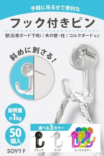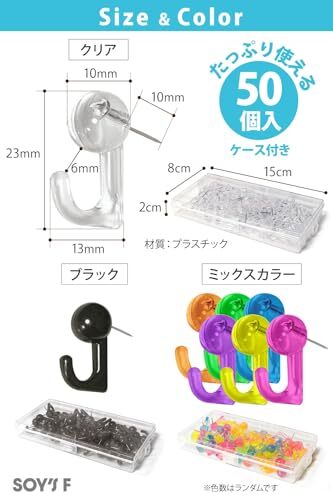 クリア 【インテリアコーディネーター監修】 SOY’S F 石膏ボード フック ピンフック 50個セット 壁掛けフック 画鋲 透明