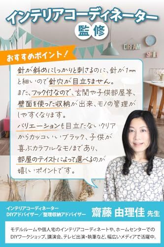 【目立たないクリアタイプ】クリアタイプの画鋲フックは高品質な透明プラスチックで作られており、様々な色の壁紙で違和感を感じることなくご使用いただけます。ブラックタイプは黒を基調とした壁紙や黒い物を飾る際にお勧めです。ミックスカラーは華やかに見せたい際にお勧めいたします。