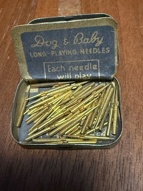蓄音機用 帯付缶 針DOG and BABY刻印 LONG PLAYING NEEDLES ゴールド50本入