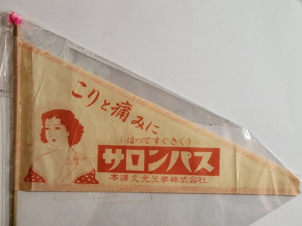 ★戦後の本舗 久光兄弟株式会社(現久光製薬)の「サロンパス」の広告旗、ペナントになります。