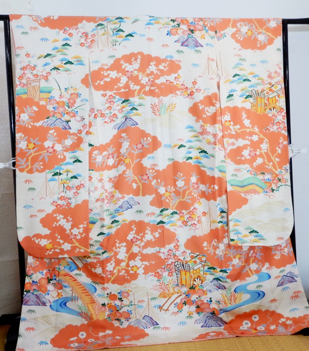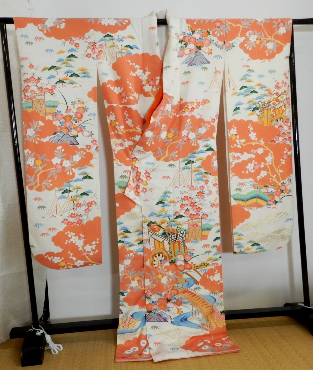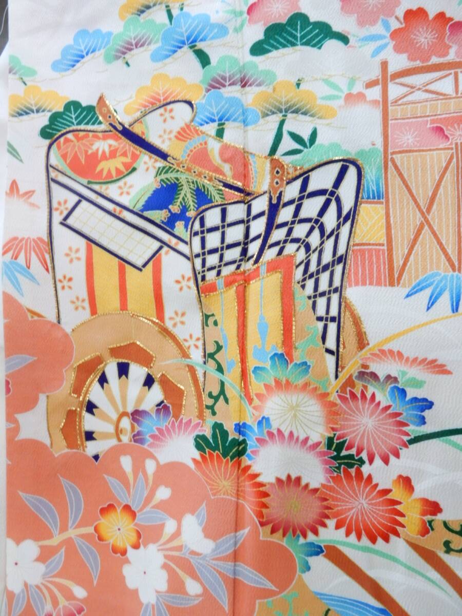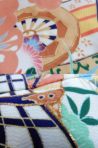 <銀の斧>正絹・振袖・御所解文・銀座ますいわ屋扱い品・金駒刺繍