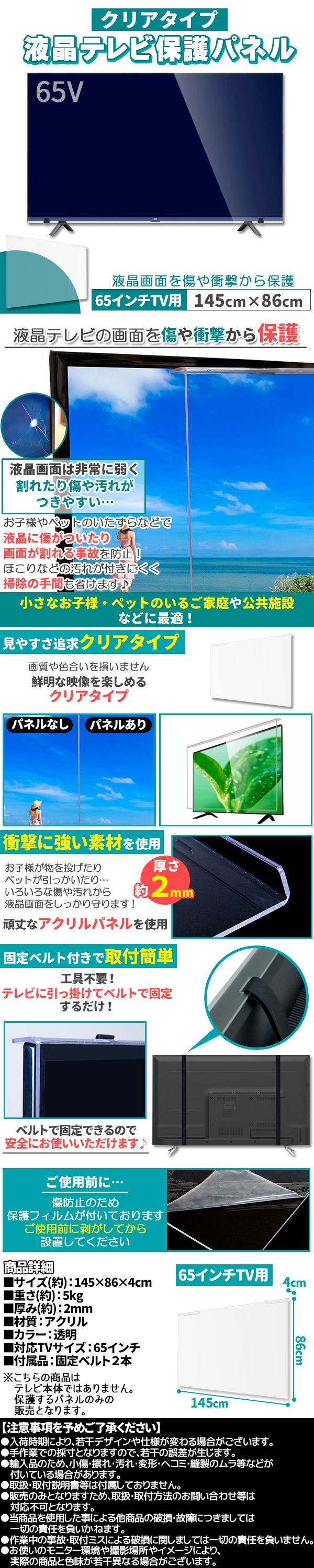 液晶テレビ保護パネル 65インチ 65型 クリアパネル 固定ベルト付 2mm厚