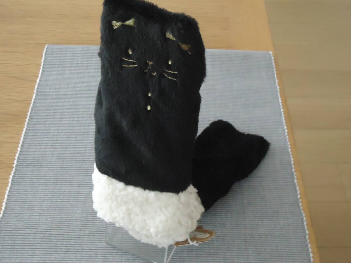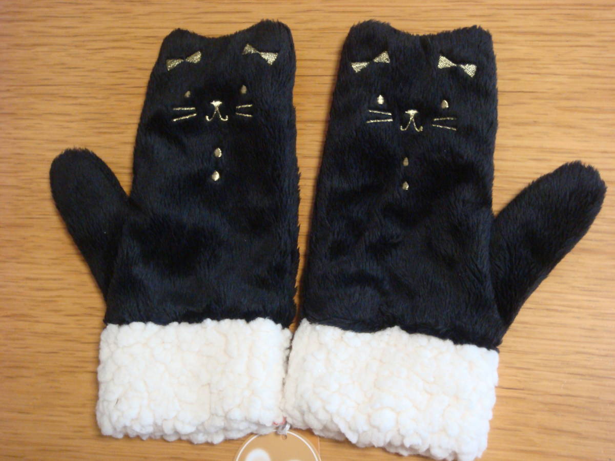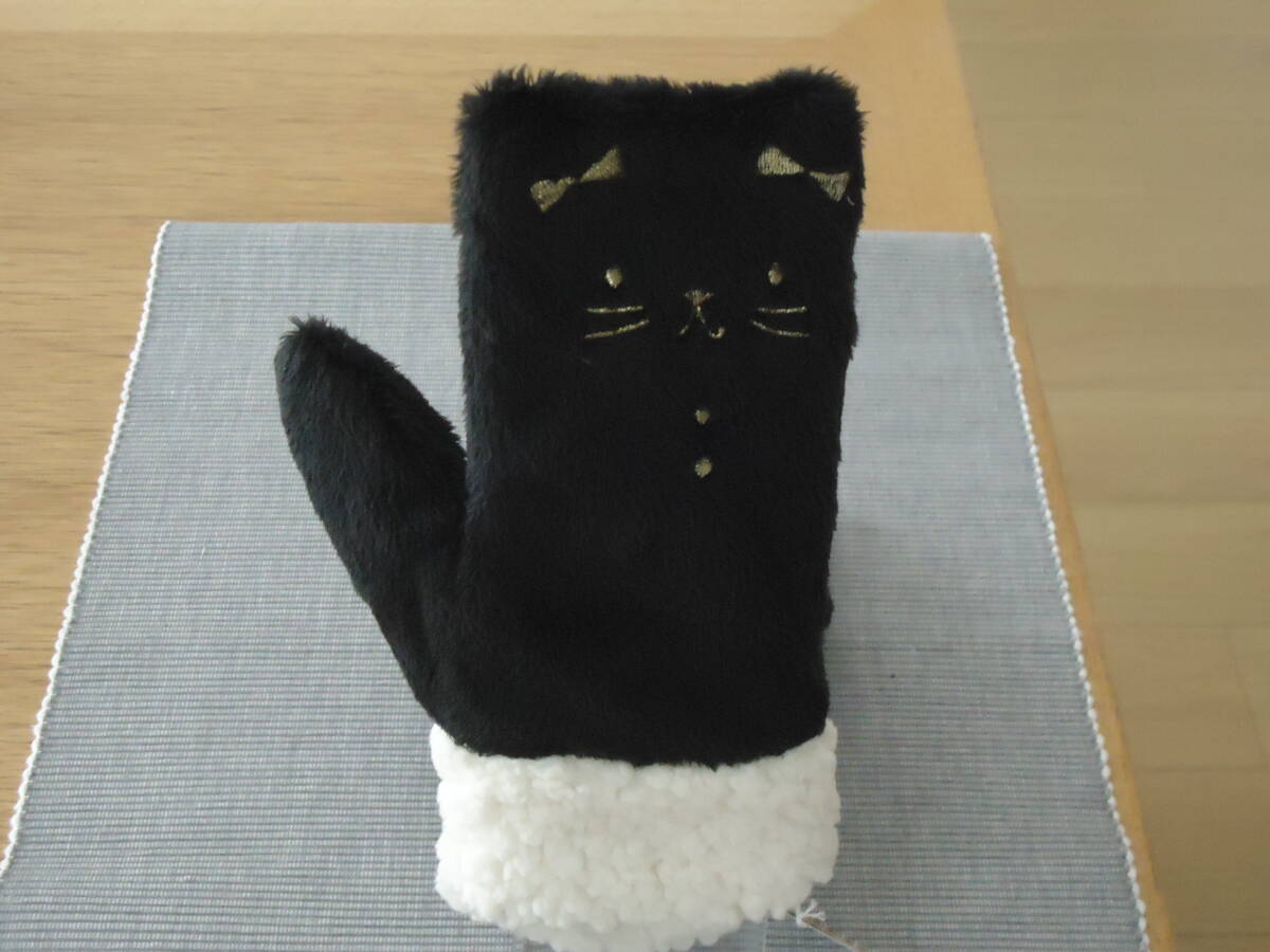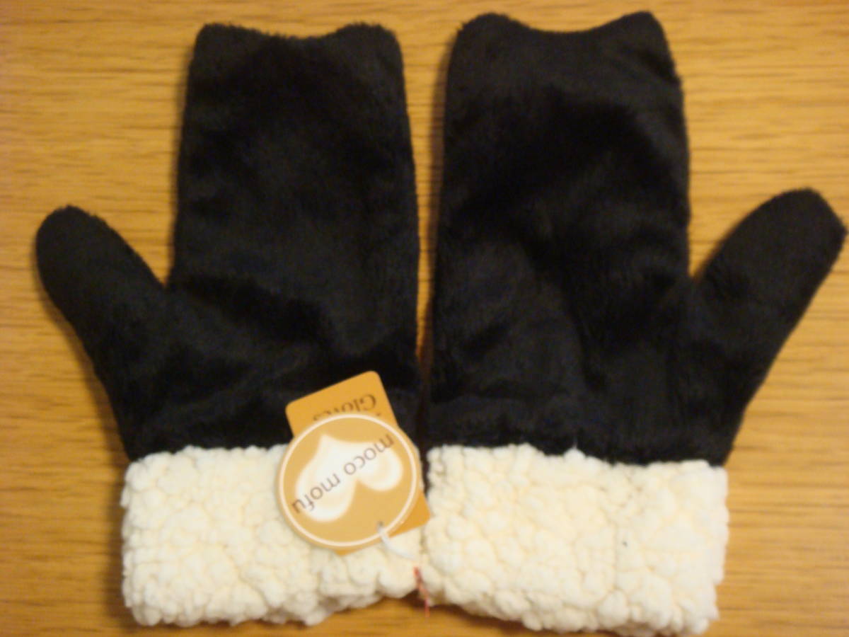 ★猫顔もこもふミトン手袋◆新品★ブラック★