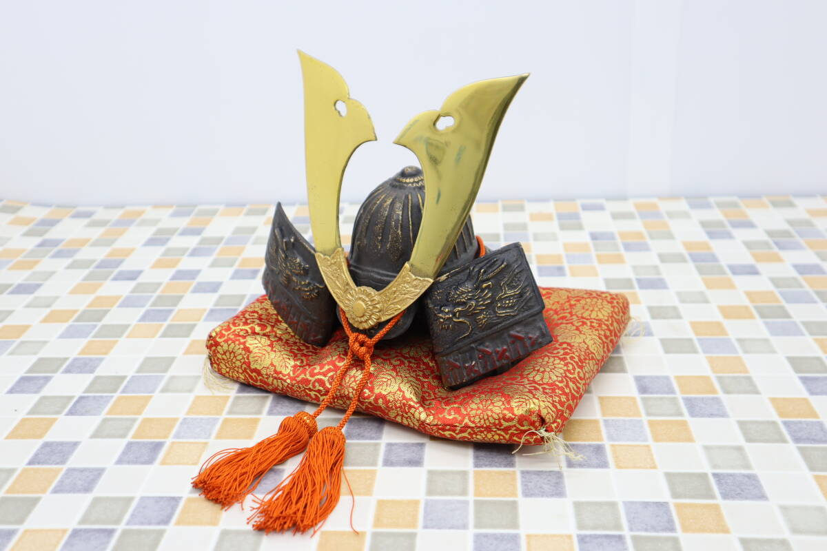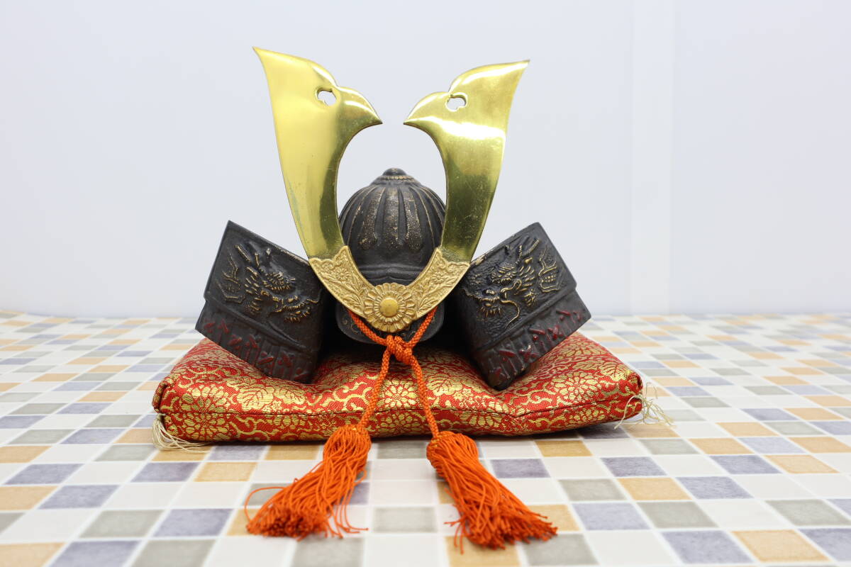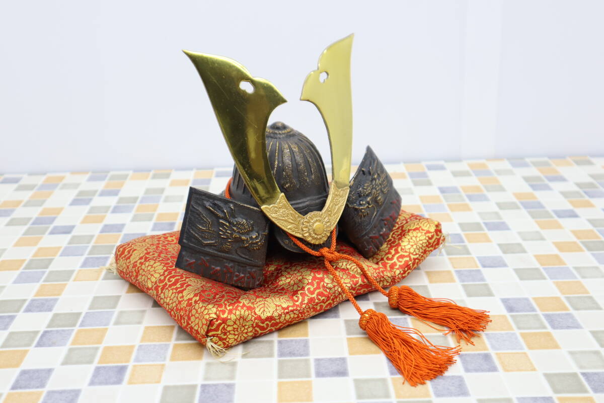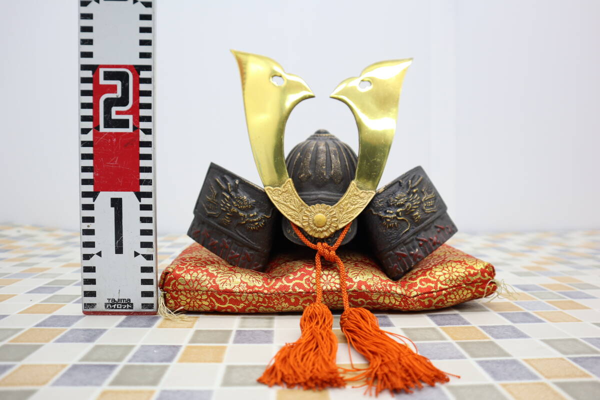 美術工芸の源氏兜、座布団付き、男の子の節句にぴったりなアイテムがヤフオクに登場!