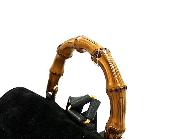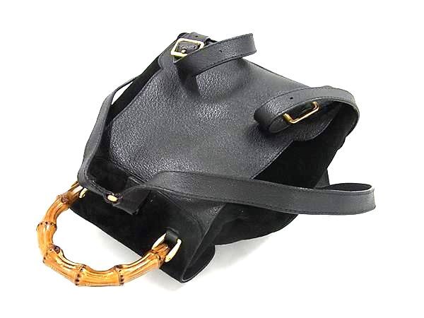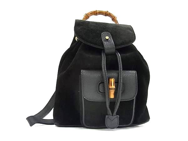 1円 ■美品■ GUCCI グッチ バンブー スエード×レザー 巾着型 リュックサック デイパック レディース ブラック系 FS6753