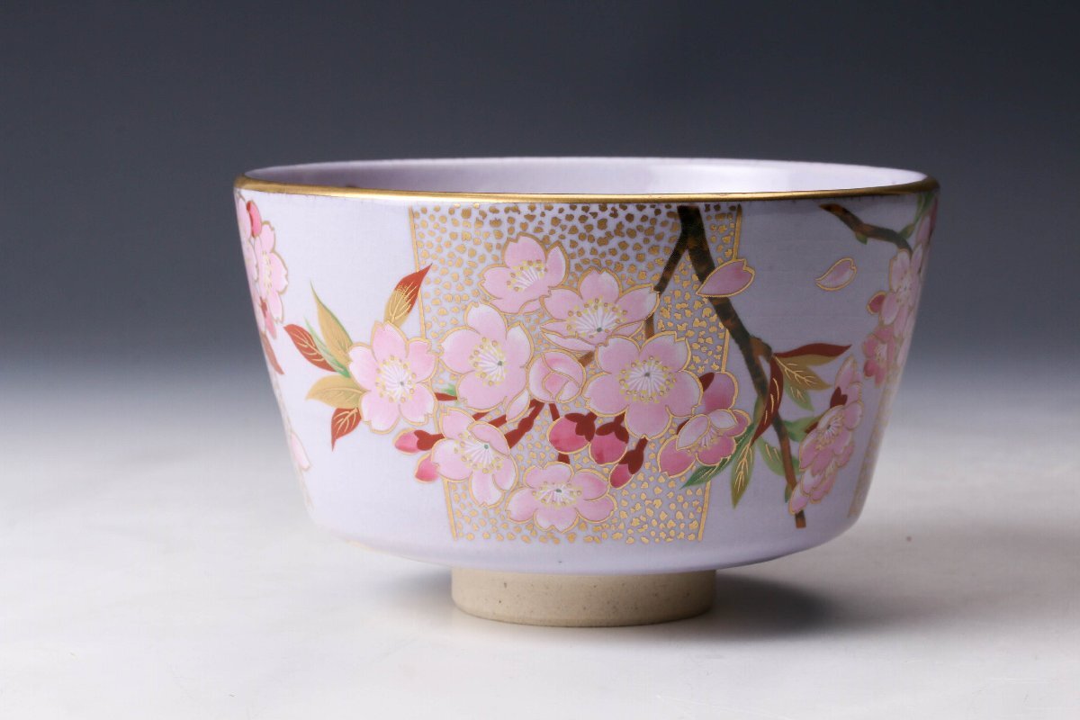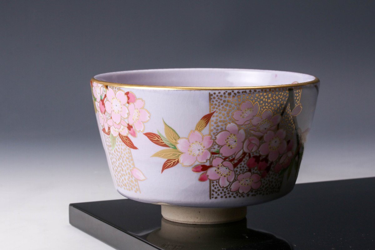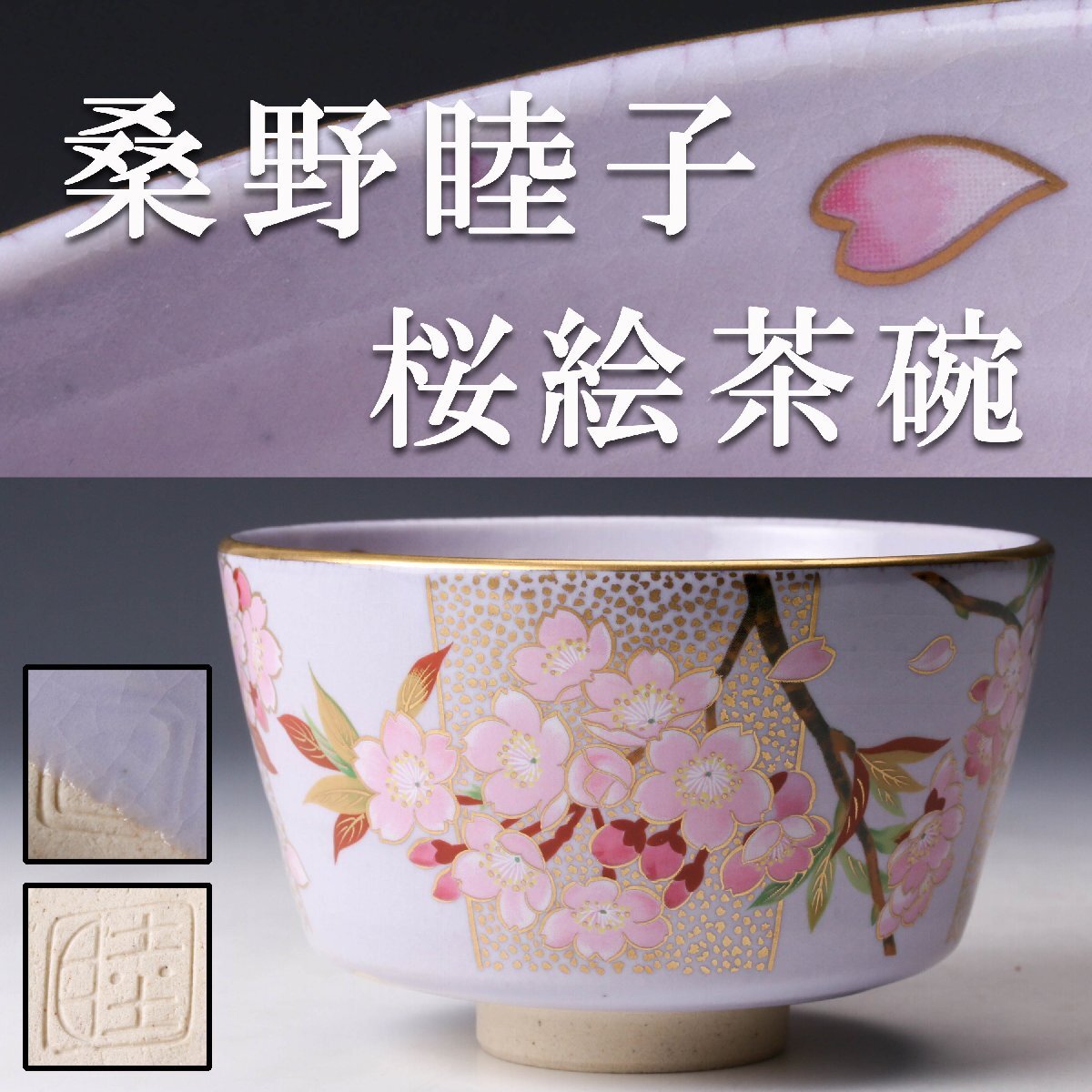 【佳香】桑野睦子 桜絵茶碗 仕立箱 茶道具 本物保証