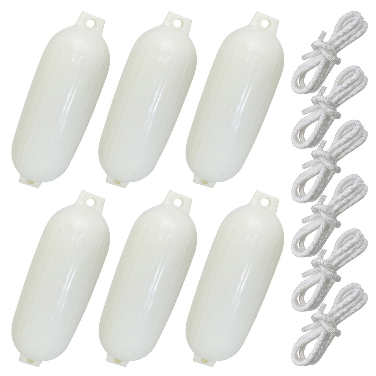 『6セット』 ボートフェンダー 580×190mm フェンダー ロープ 2m 白/ホワイト 浮き ブイ フロートロープ 係留ロープ