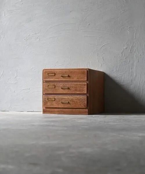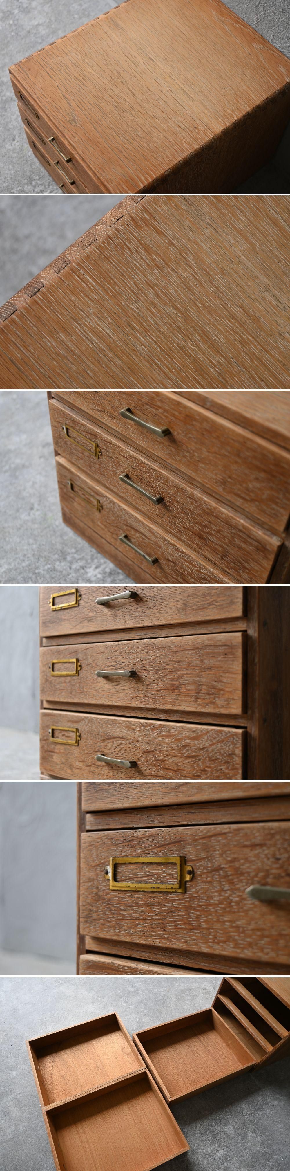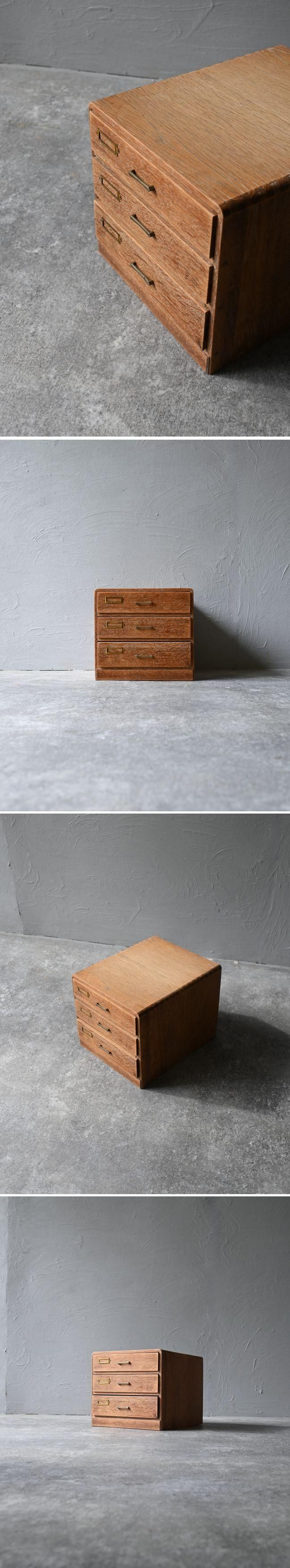 古い楢材の小引き出し3杯  アンティークアトリエ小物収納文具収納キッチン収納店舗什器