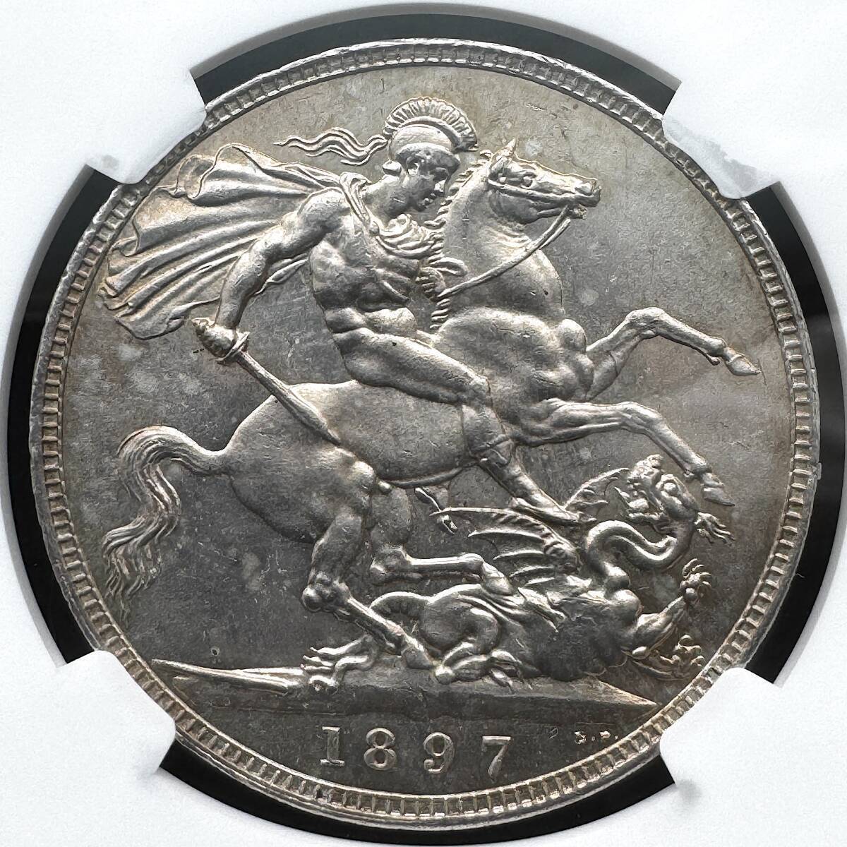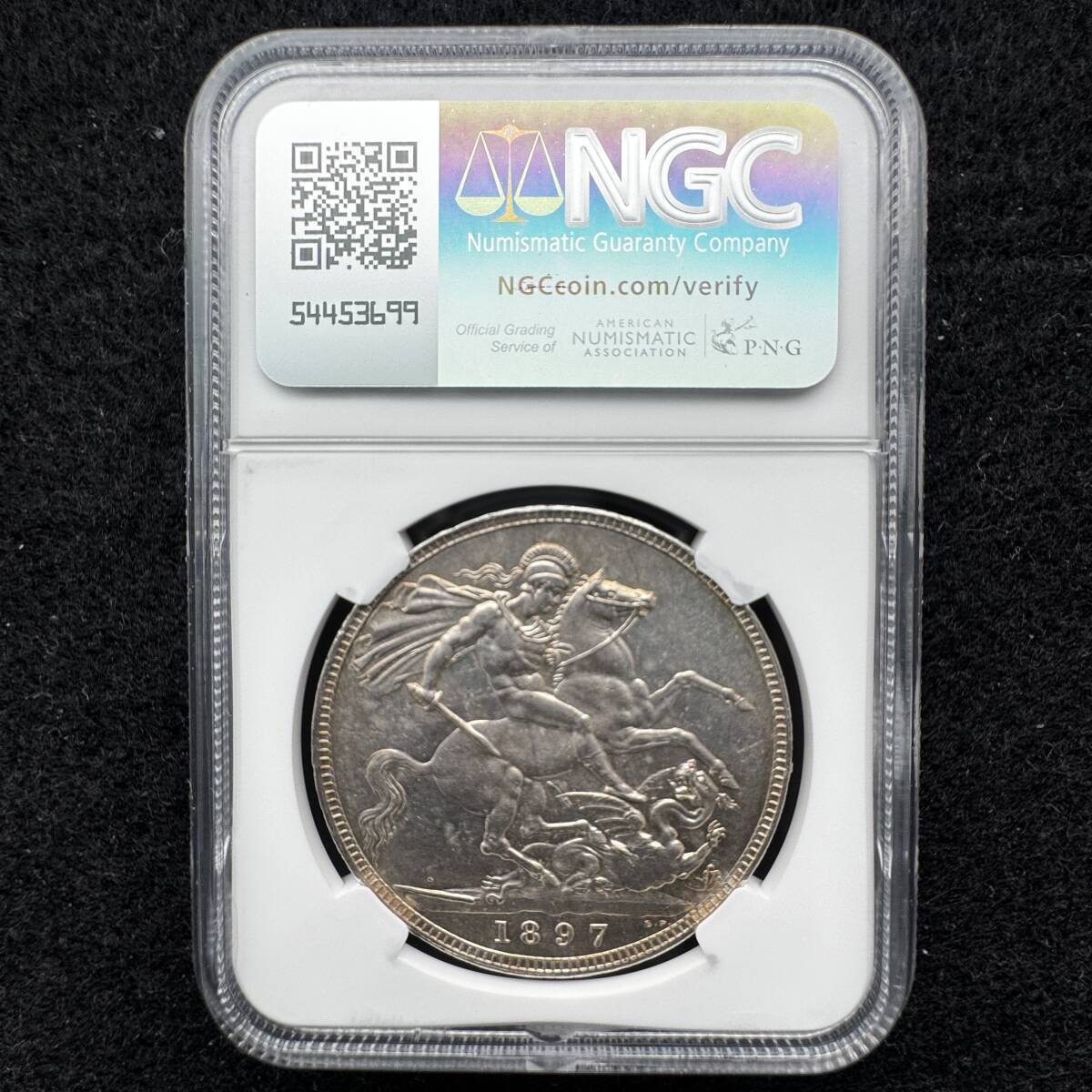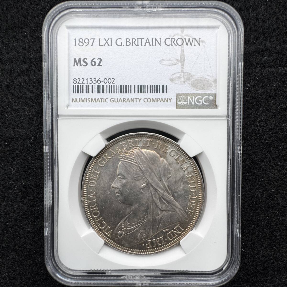 『時を紡ぐ女王の輝き 高鑑定』1897年 イギリス ヴィクトリア女王 在位61年(LXI)1クラウン 銀貨 NGC MS62 英国王室の気品をあなたに 稀少