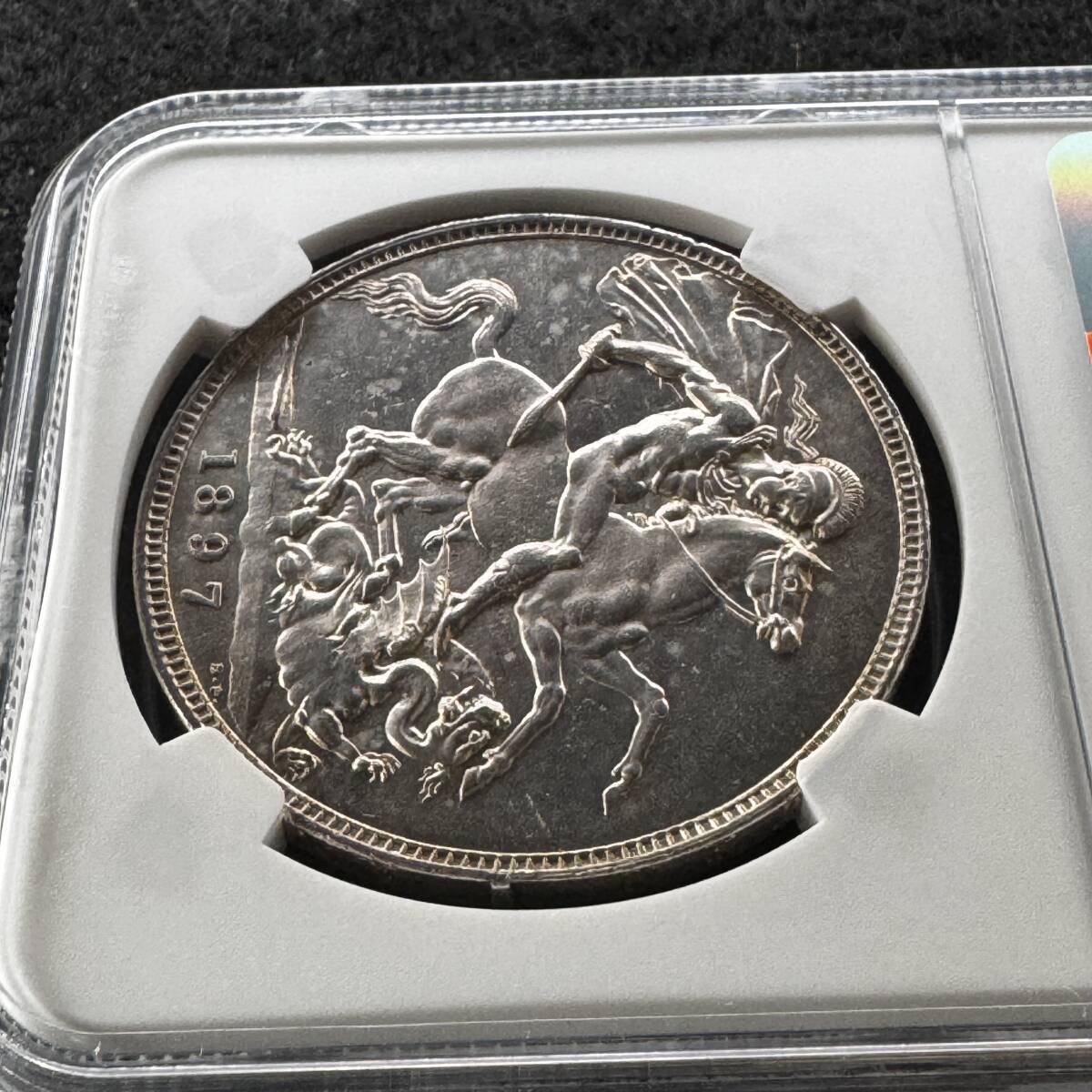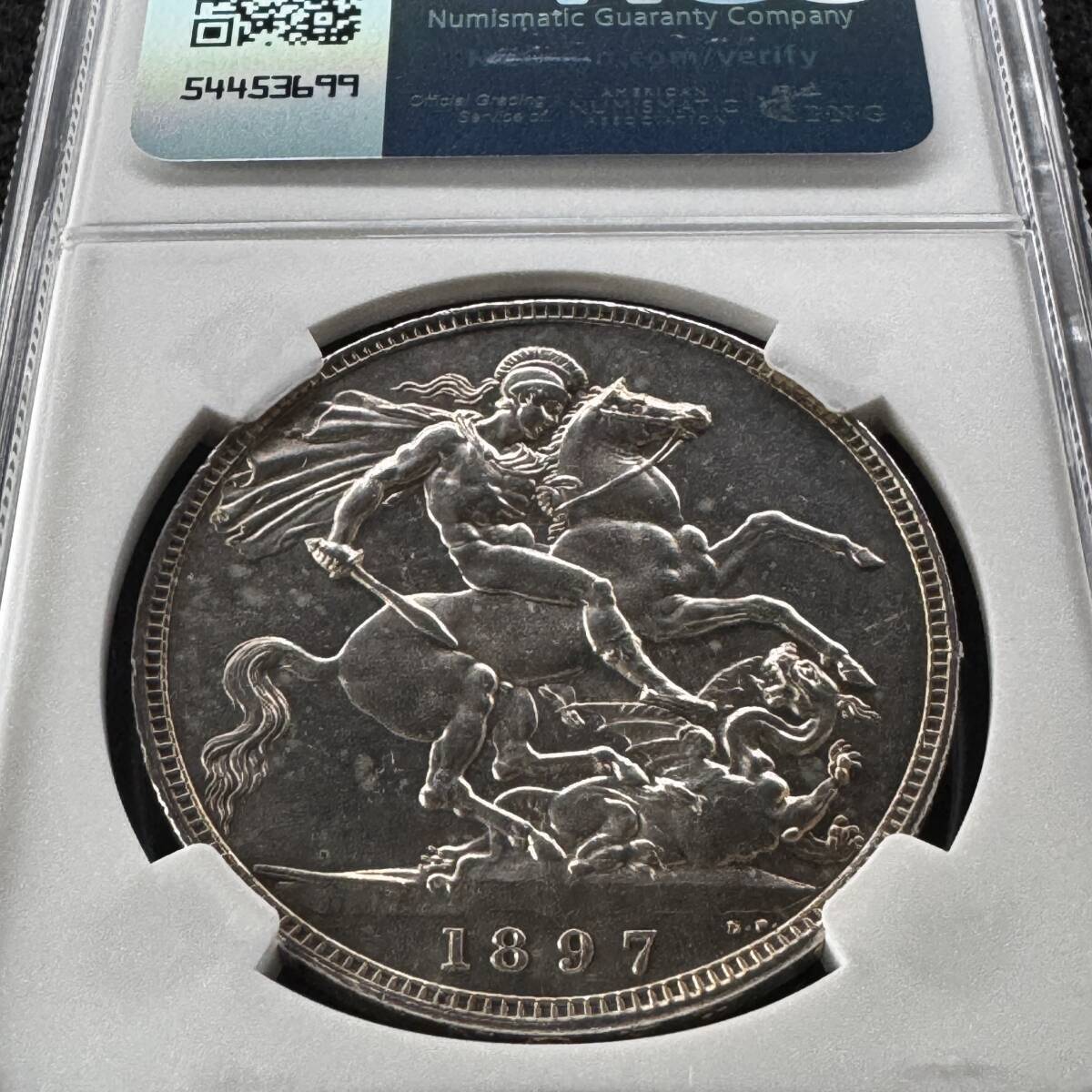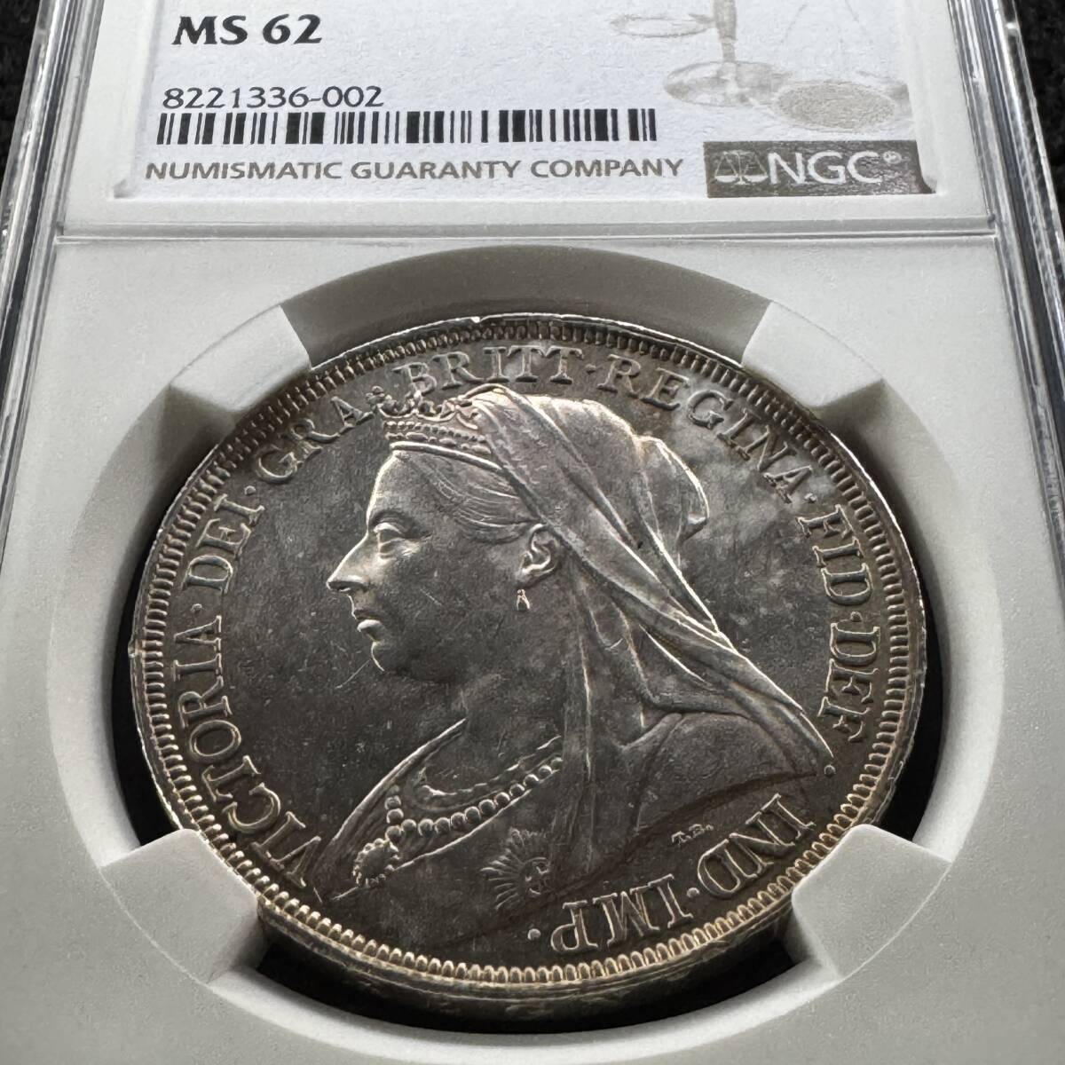 『時を紡ぐ女王の輝き 高鑑定』1897年 イギリス ヴィクトリア女王 在位61年(LXI)1クラウン 銀貨 NGC MS62 英国王室の気品をあなたに 稀少