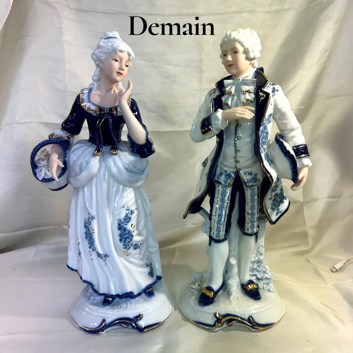 品名: Demain ドマン 紳士 貴婦人 フィギュリン2点 陶器人形 置物 オブジェ 西洋陶器 飾り アンティーク コレクション