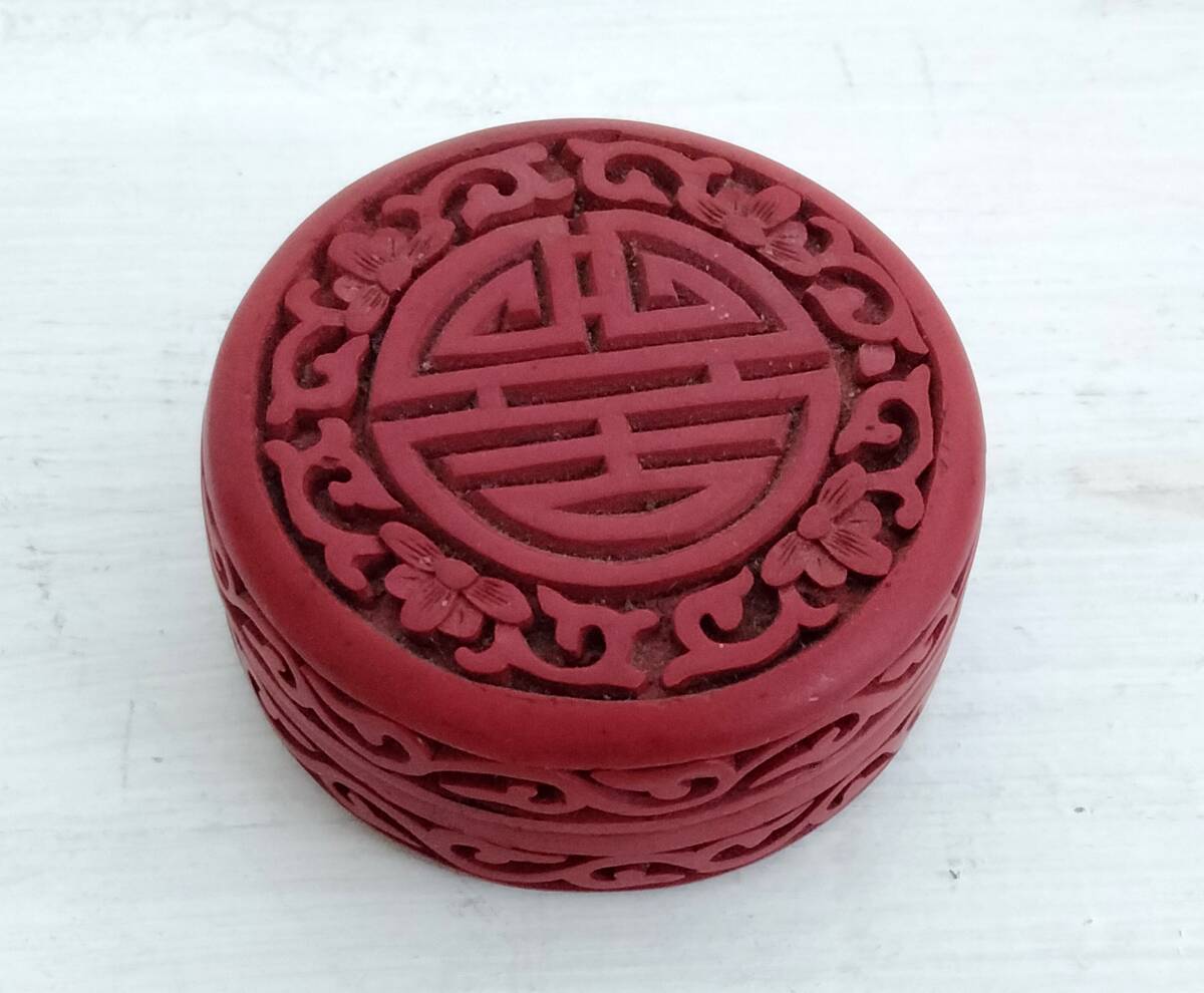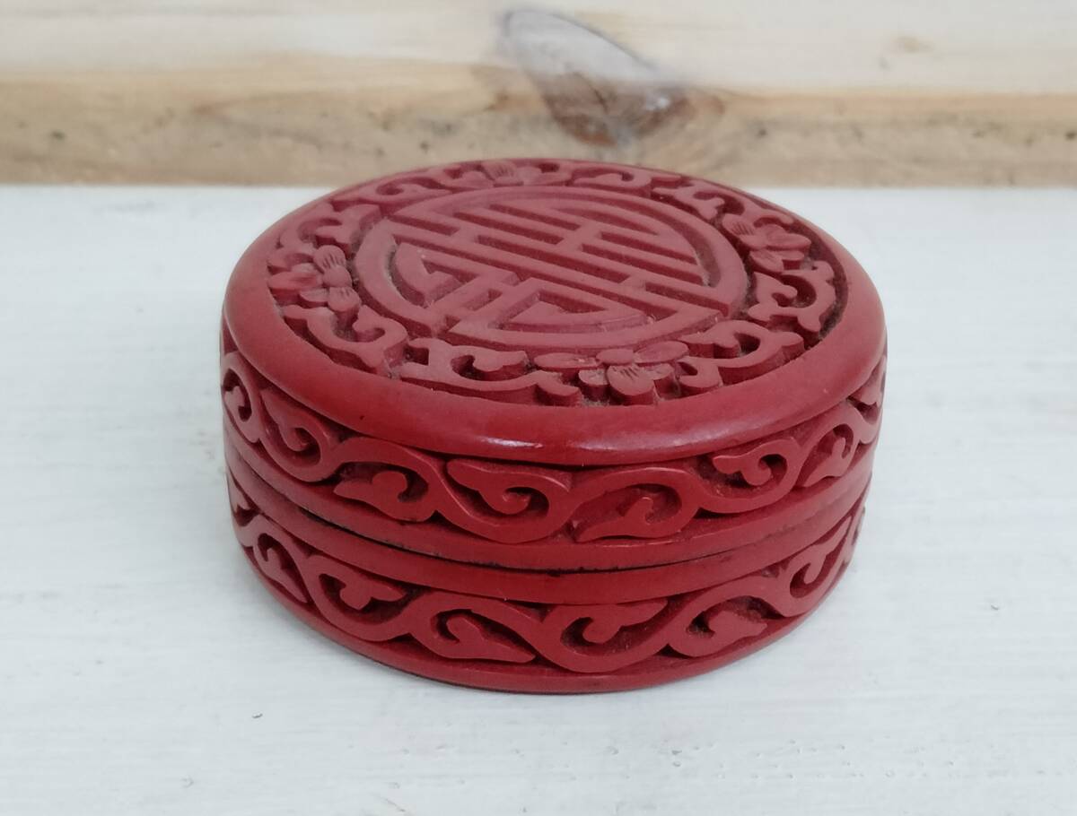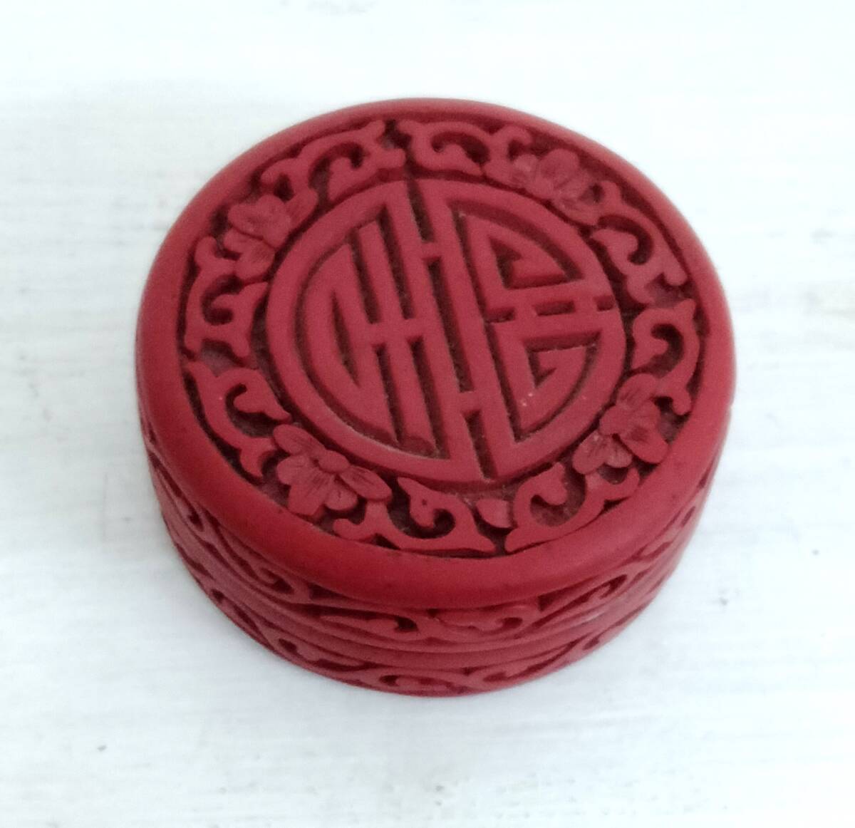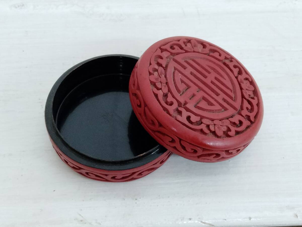 *堆朱 香合 *茶道具 茶器 香道具 *工芸品 中国古玩 彫刻 *花模様 花図 内黒塗 |
