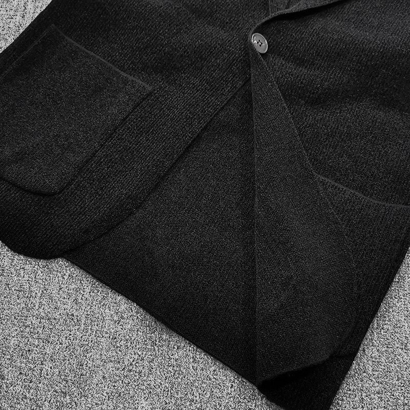 新品 贅沢感 ウール混 ニット ジャケット メンズ 春秋 厚手 セーター 秋冬 暖かさ 細身 柔らかい カーディガン 1つボタン 黒 T6013-L