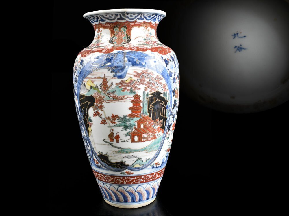 | 商品名 | 【雲】某収集家買取品 古九谷 色絵金彩人物楼閣山水風景図花瓶 飾壺 高さ35cm 古美術品(花器花入古伊万里)DJ742 OTDkmhflf |
