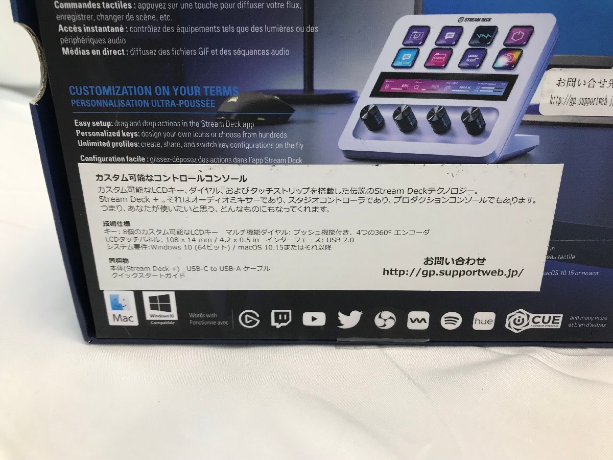 | 【商品名、メーカー(ブランド)名】 【★01-677】■中古■elgato STREAM DECK+ 20GBD9901 エルガト ストリームデック(7715) 【はじめに】 営業時間は平日 10:00~17:00までとなります。※土日祝休業 落札後の連絡は、取引ナビでお願い致します。 発送は佐川急便 飛脚宅配便のみです。 タイトルに「直接引取り」の文言がなければ来店対応不可です。発送のみの対応となりますのでご了承ください。 メール便やコンパクト便など佐川急便以外の発送は行っておりませんのでご了承下さい。 ※沖縄県他、離島地域(中継料金の発生する地域)へのお届けの際は送料着払い(配送会社指定の料金) での発送となります。 ※一部離島地域では着払い不可の地域があるため店舗より元払いで発送させていただきますが、別途中継料金をお支払いしていただく場合があります。 他商品との同梱発送はできません。あらゆる事故防止のために単品での発送となりますのでご了承ください。 領収書は発行しておりません。詳しくは下部の【領収書について】をお読み下さい。 商品に不良があった場合は「返品返金」にて対応致します。 交換や修理は行っておりませんので予めご了承下さい。 以下、全てお読み下さい。 【商品について】 当ストア商品をご覧頂き有難うございます。必ず最後まで説明文をお読み下さい。 いかなる場合でも内容以外の対応は致しかねます。 入札は内容に同意されたものとさせて頂きます。 こちらのお品物は【中古品】です。 現状品でのお渡しです。 【状態ランク・商品状態】※当店査定基準参考下さい。 Bランク 【弊社管理番号】2200019357715