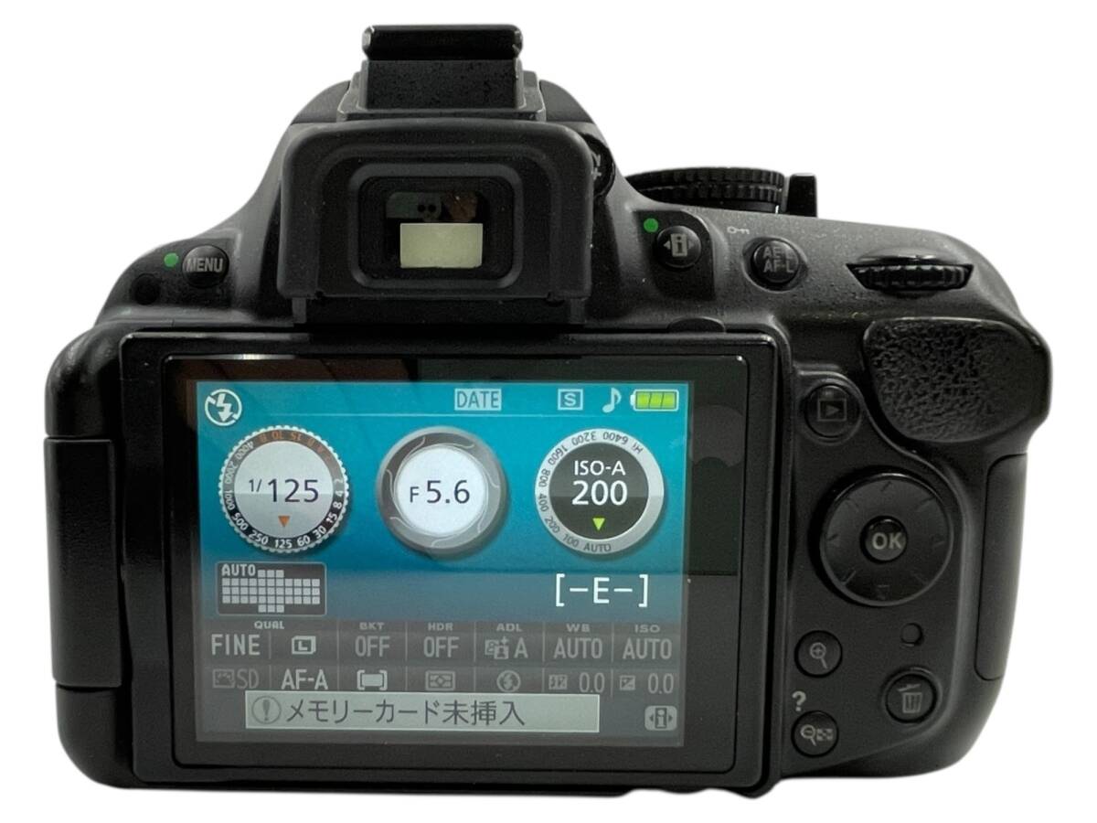 | 【商品情報】 商品ランク:A(使用感少なく良好な状態です) 動作確認:シャッター、フォーカス、フラッシュ発光確認済みです。 外装状態:カメラボディは目立つキズ等なくきれいな状態です。レンズ表面に約2mmのキズがあります。純正バッテリーは劣化あり、もう一点の互換バッテリーは正常に動作します。 シャッター回数69,629回付属品:バッテリー×2(純正+互換)、バッテリーチャージャー、レンズキャップ 備考:Nikon AF-S DX NIKKOR 18-55mm f/3.5-5.6G VR レンズ付属です。 ※ここでいう状態とは主に外装(見た目)のことを指しております。動作を含めたものではありませんので、ご理解ください ※中古品の状態ランクはあくまで主観になります。又、全ての動作を保証するものではありません。 ※極力傷などは撮影をしておりますが、全ての撮影は出来ませんので、画像にてご判断をお願い致します。 お手数ではございますが、商品サイズ、仕様等につきましては、メーカーにて必ずご確認の上、ご購入をお願いいたします。 | 【配送方法】 80 |