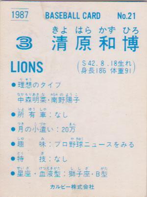 ★トレカ★1987年カルビー【#021 清原和博】★