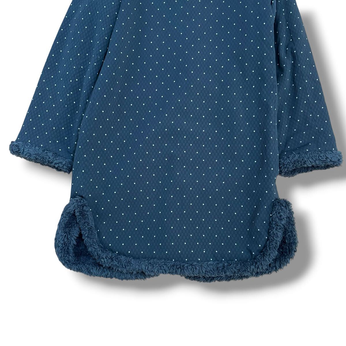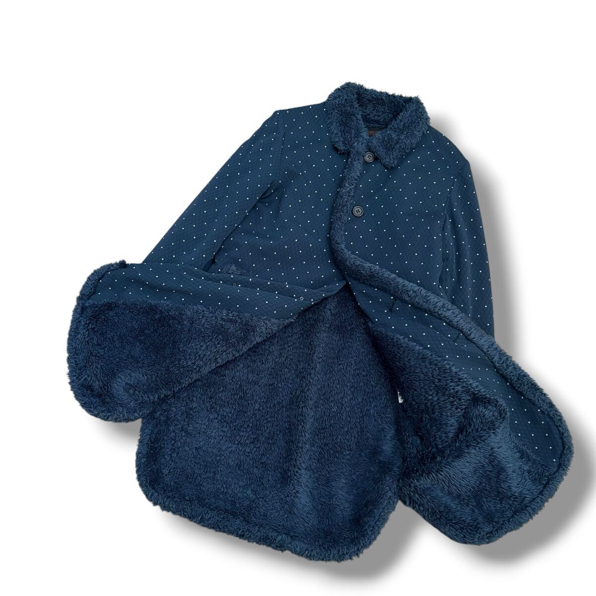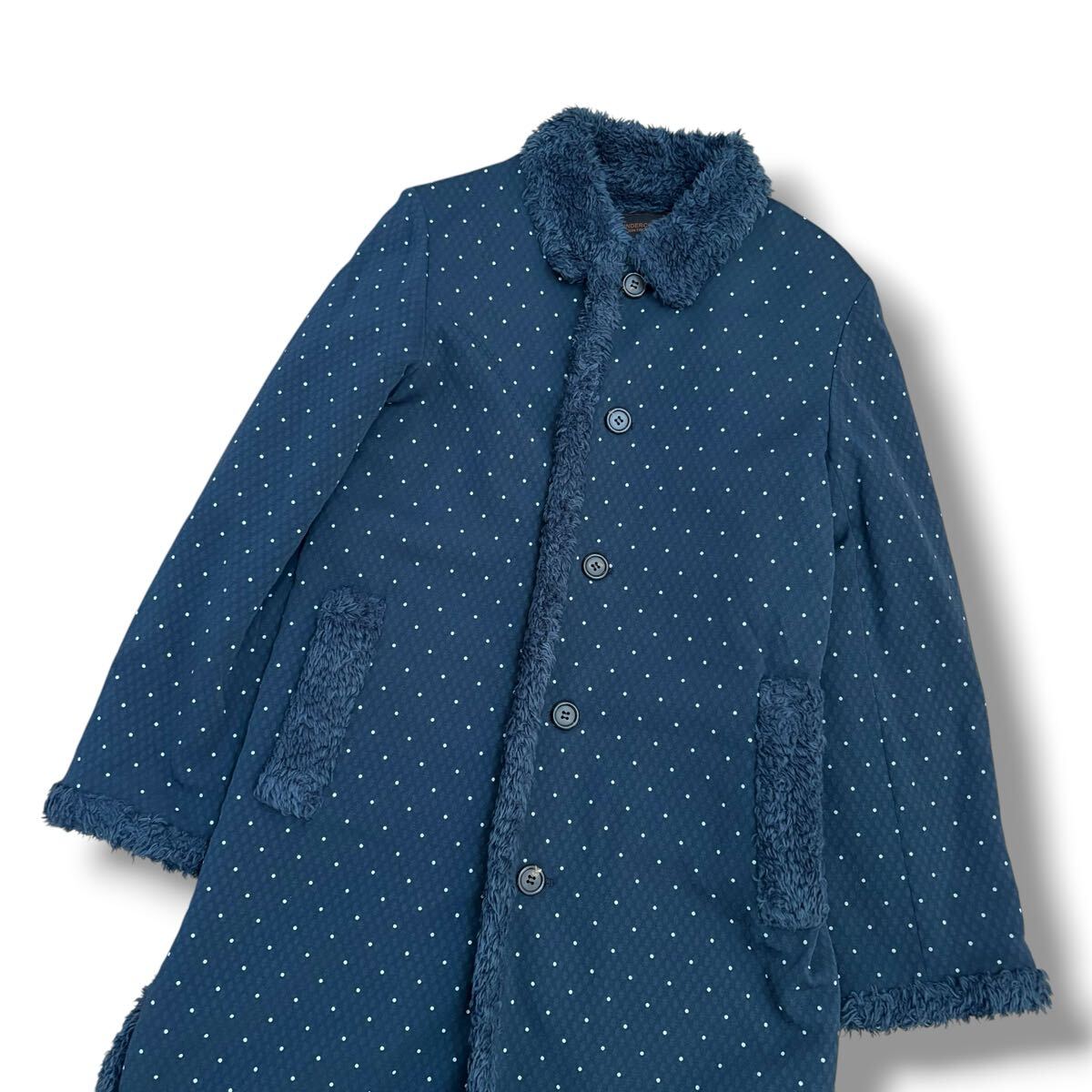 柔らかなファーで仕上げられたパイピングが高級感を演出し、ピンドットの総柄はシンプルながらも存在感抜群です。