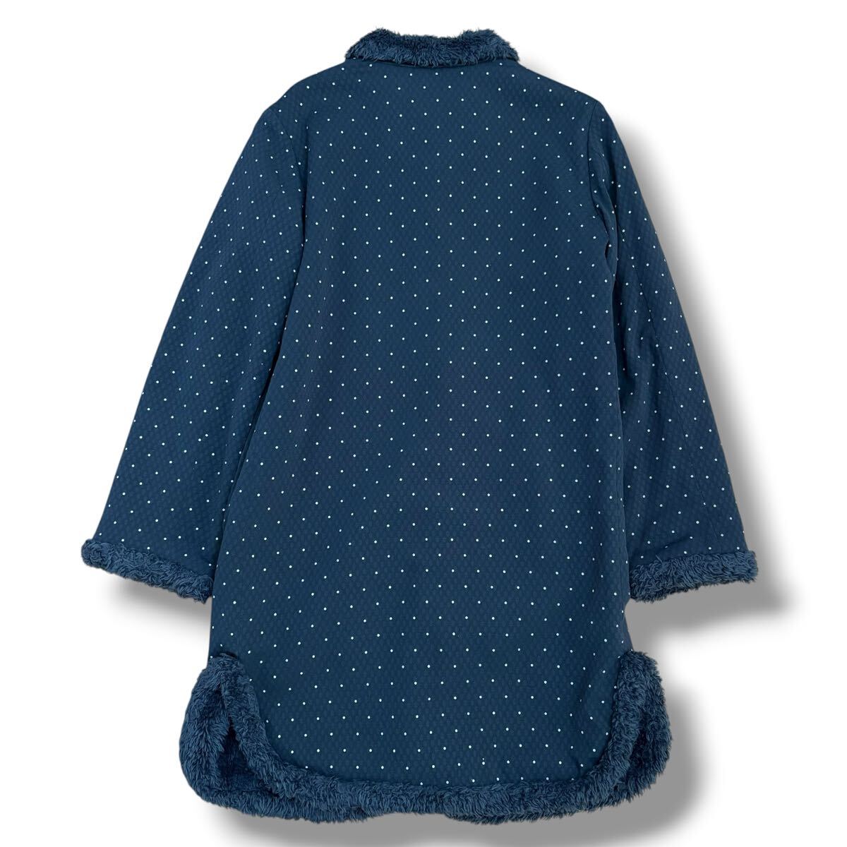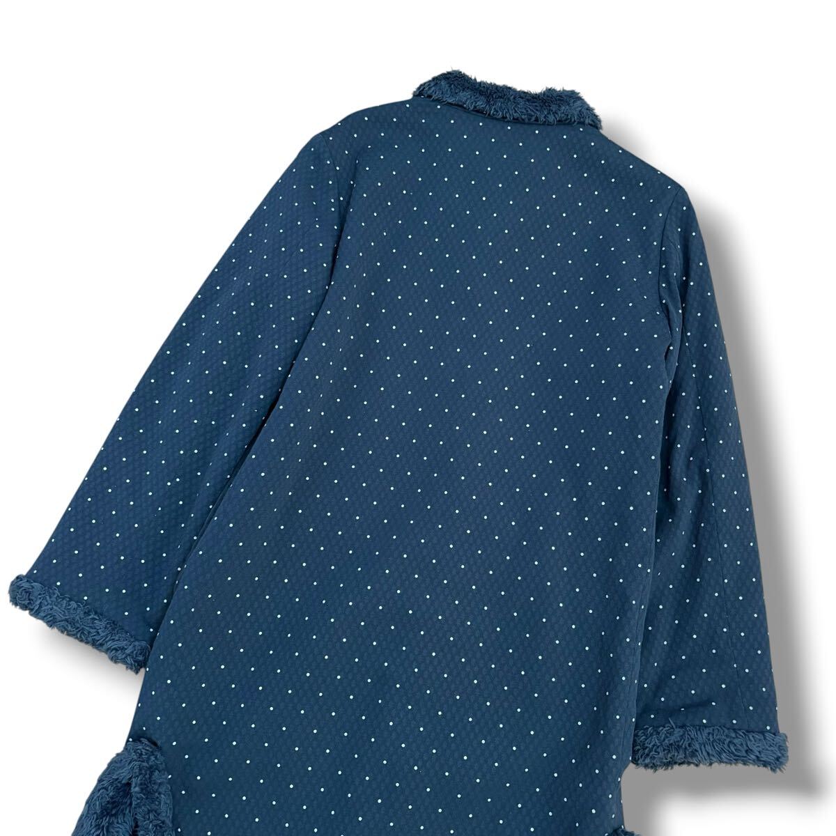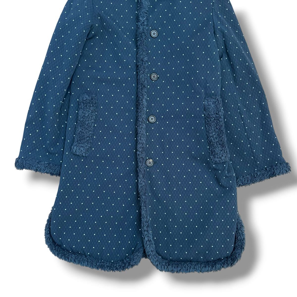 柔らかなファーで仕上げられたパイピングが高級感を演出し、ピンドットの総柄はシンプルながらも存在感抜群です。