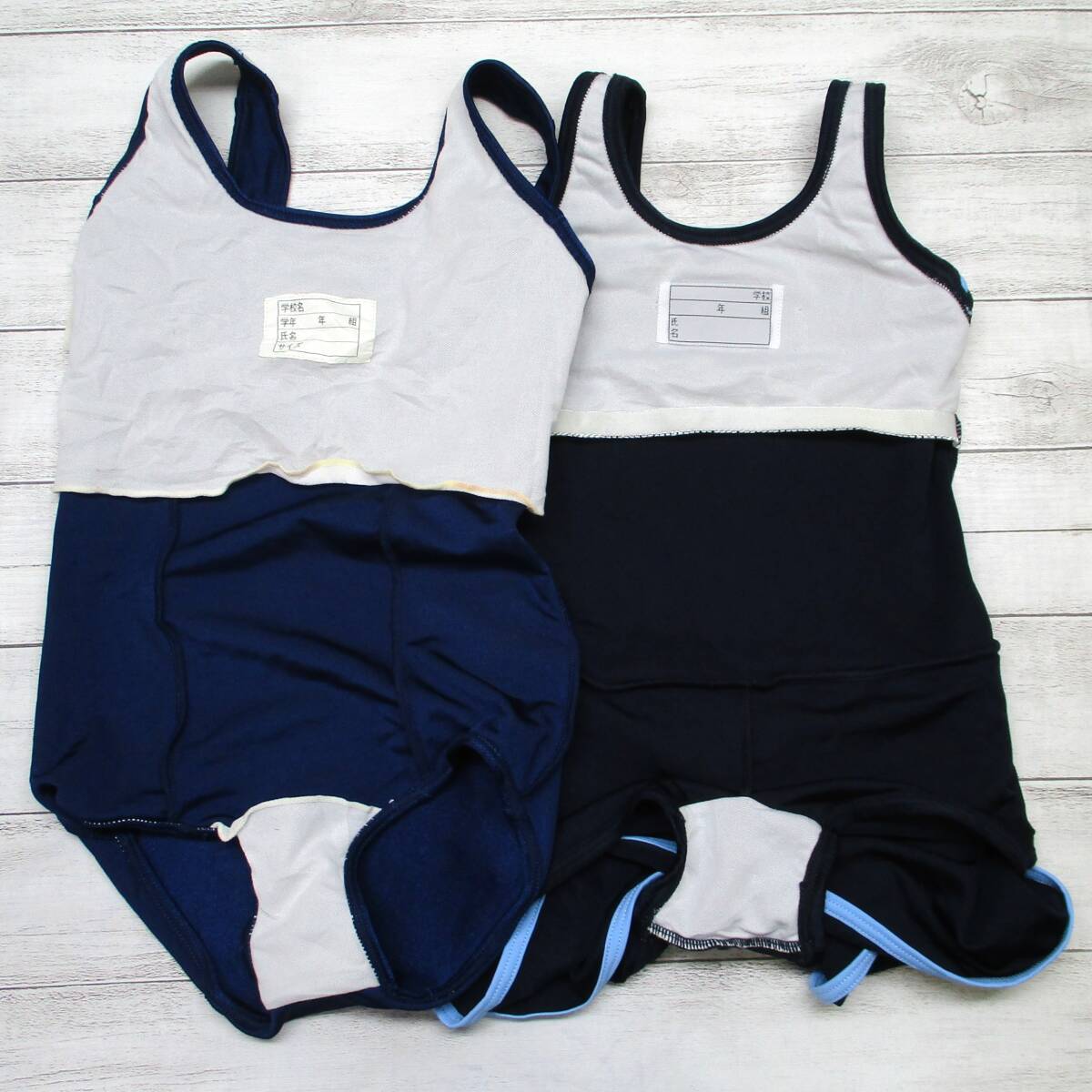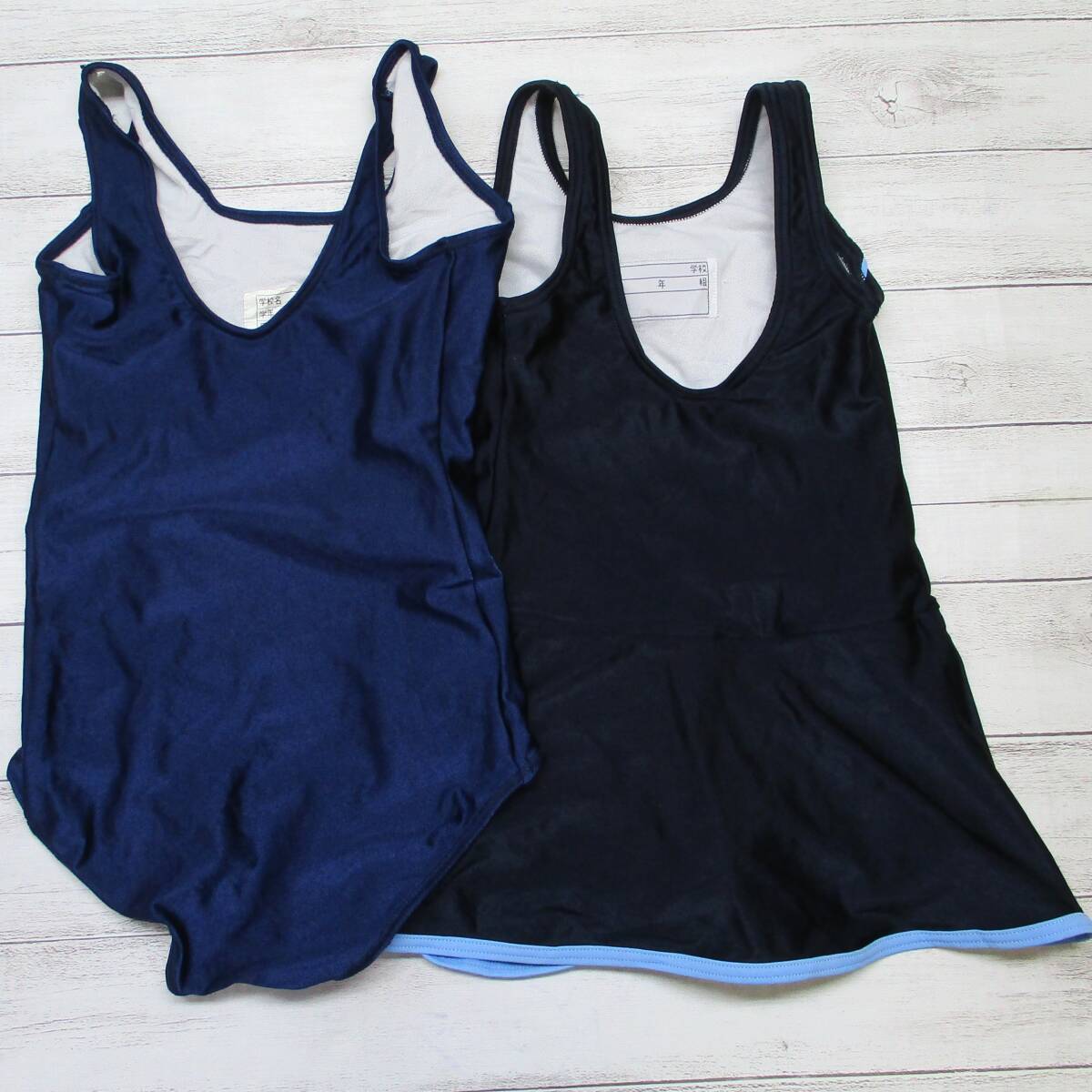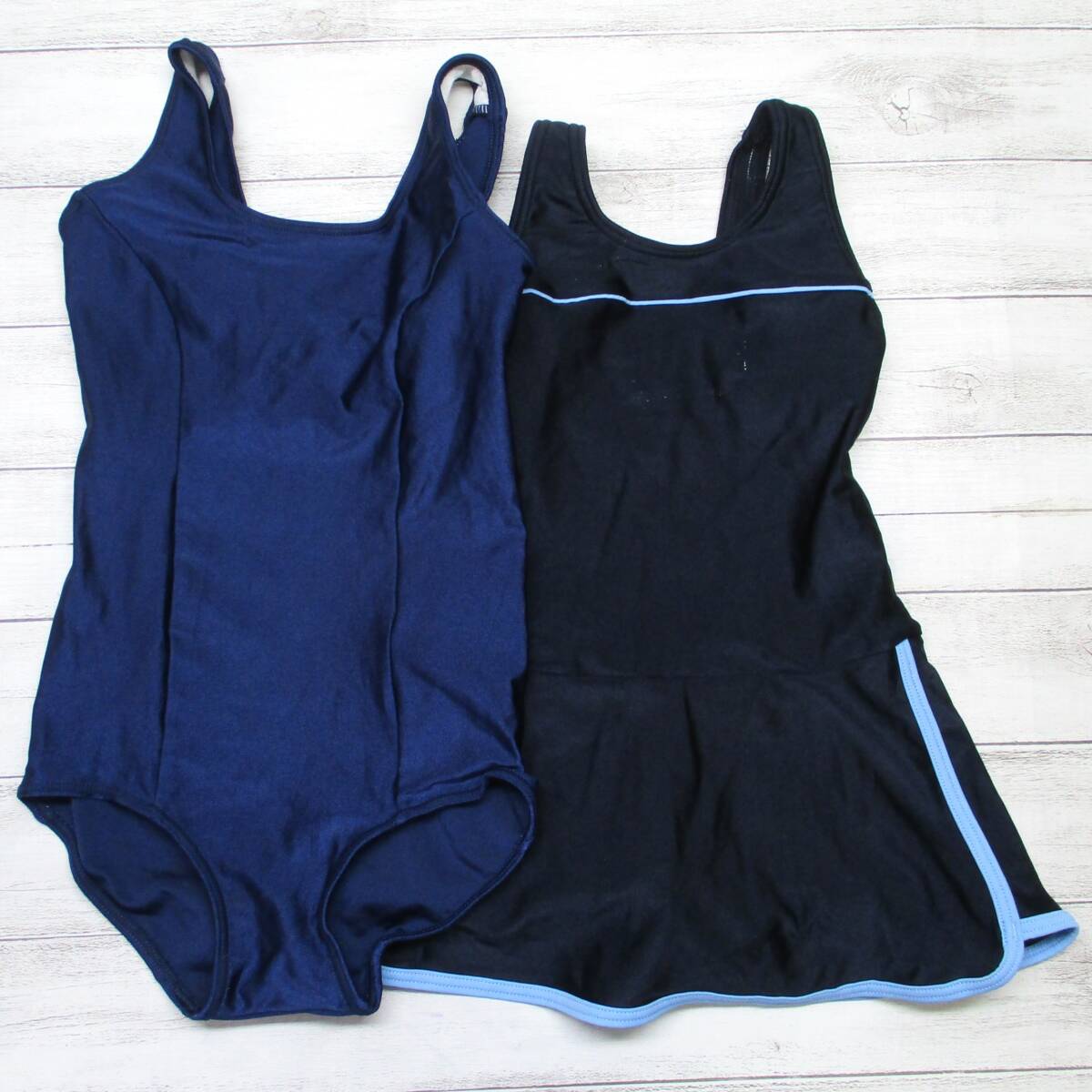 E9543☆競泳水着 女子 130サイズ 2枚セット ジュニア まとめ売り ネイビー 紺黒系 ワンピース スカート 水泳 スイミング スイム プール
