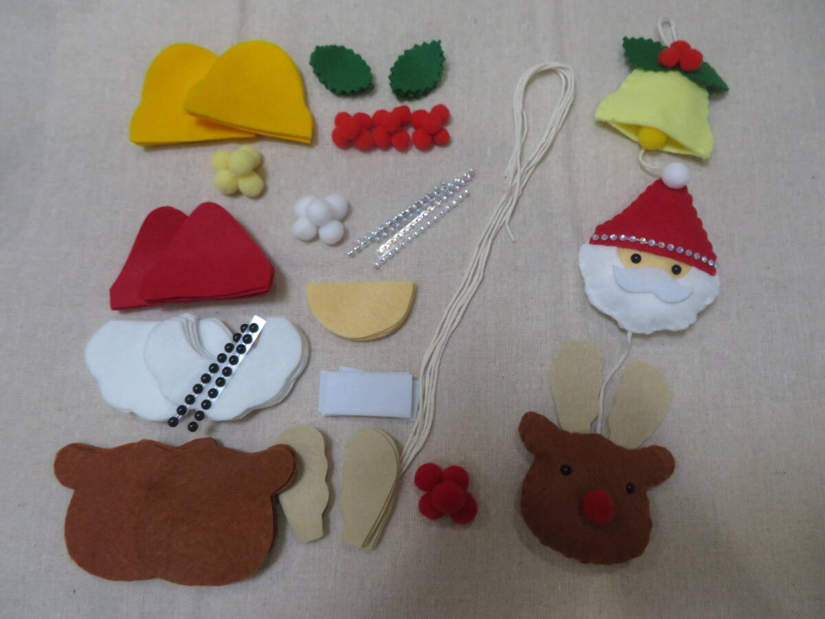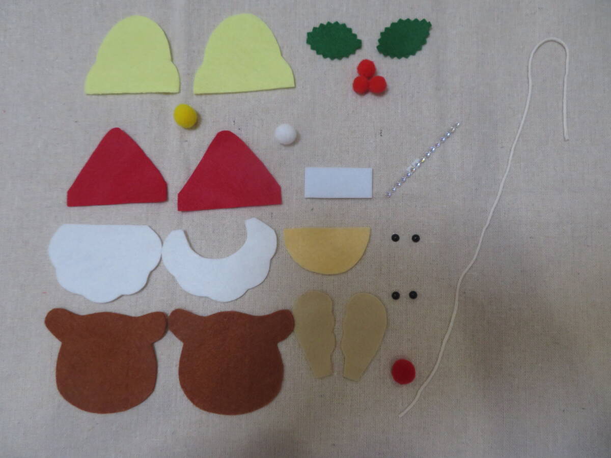 ☆サイズ☆ サンタ帽子 たて約4.5cm×よこ約6cm ひげ(大) たて約4.5cm×よこ約7cm 顔 たて約2.5cm×よこ約4.7cm あごひげ たて約4.5cm×よこ約7cm 口ひげ(シールフェルト) たて約2cm×よこ約4cm 帽子用・トナカイ鼻・ベル共通デコレーションボール 直径約1.5cm サンタの帽子模様用ラインストーンシール 長さ約6cm 目(サンタ・トナカイ共通) ラインストーンシール 直径0.4cm トナカイ本体 たて約6cm×よこ約7.5cm 角 約5cm×3cm ベル本体 たて約5cm×よこ6cmbr> ヒイラギ 約3cm×2cm ヒイラギの実デコレーションボール 直径約1cm かけひも(極細毛糸) 30cm ☆個数☆ ※このキットは5個分です。 サンタ帽子2枚・ひげ(大)1枚・顔1枚・あごひげ1枚・口ひげ1枚・帽子用デコレーションボール(トナカイ鼻・ベル共通)3個・帽子模様ラインストーンシール1個・目4個・トナカイ本体2枚・角2枚・ベル本体2枚・ヒイラギ2枚・実3個・かけひも1本が1セット サンタ帽子 合計10枚 ひげ(大) 5枚 顔 5枚 あごひげ 5枚 口ひげ(シールフェルト) 5枚 帽子用・トナカイ鼻・ベル共通デコレーションボール 白5個・赤5個・黄色5個 合計15個 サンタの帽子模様ラインストーンシールシール 5本 目(サンタ・トナカイ共通) 20個 トナカイ本体 10枚 角 10枚 ベル 10枚 ヒイラギ 10枚 ヒイラギの実デコレーションボール 合計15個 かけひも(極細毛糸) 5本 ※1・3・4枚目画像の完成品は商品に含まれておりません。 ☆商品状態・説明☆ ※材料は主にフェルトを使用しています。 ※素人裁断です。 ※作成者様にご用意いただくものは、縫い糸・綿・手芸用ボンド等の接着剤です。 ※サンタの口ひげはシールフェルトです。裏側に裁断線を描いてありますので、作成者様に裁断をお願いいたします。 ※サンタ・トナカイ・ベルに綿を入れる工程を省くと、針を使わずにボンド接着のみで出来ます(4枚目画像参照) ※比較的簡単に作れるキットになっておりますので、レクリエーション等にも活用していただけると思います。 ※作り方の説明書(自作)も添付いたします。 |