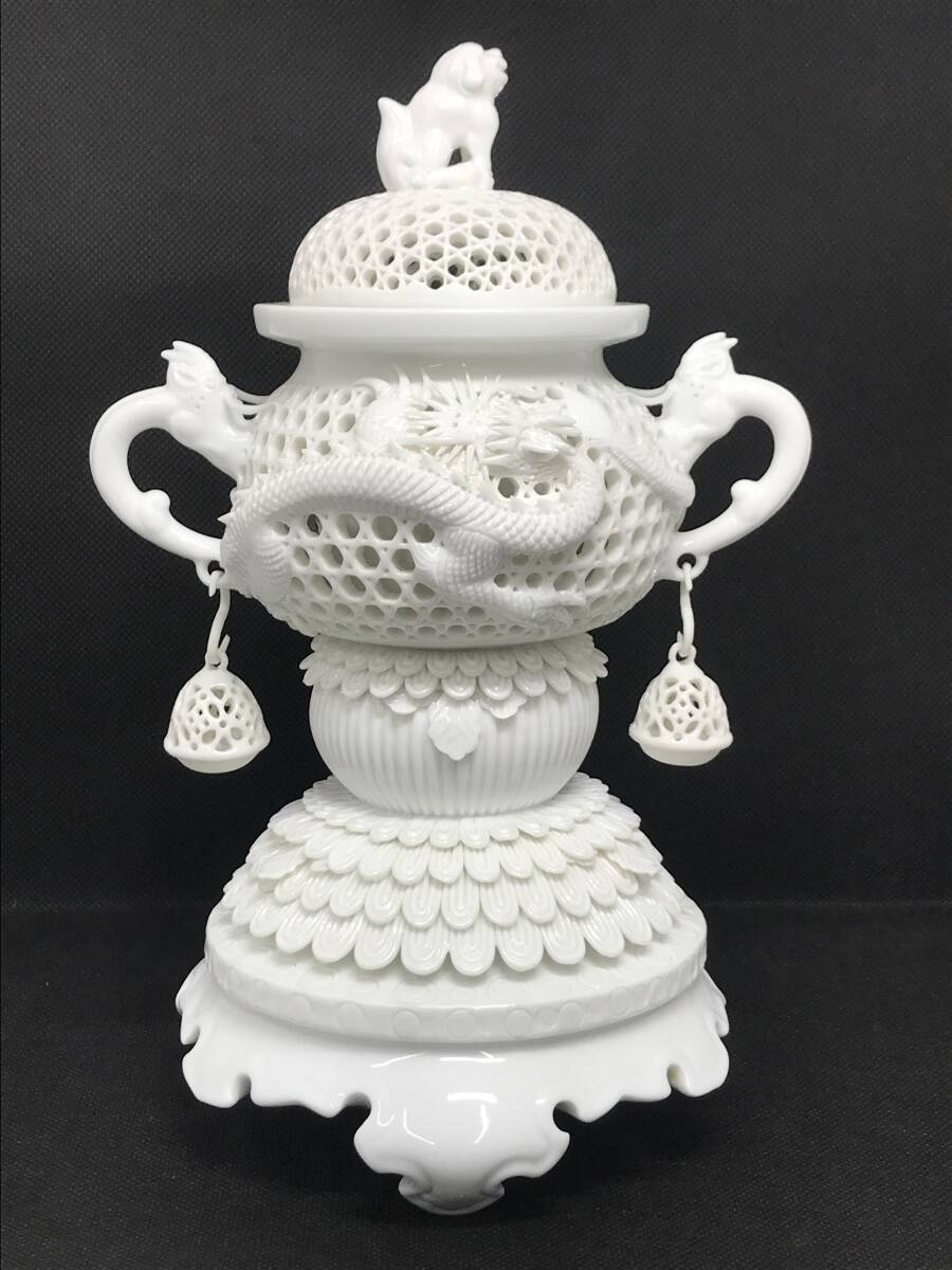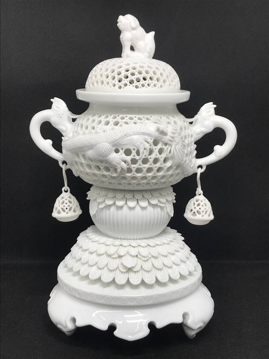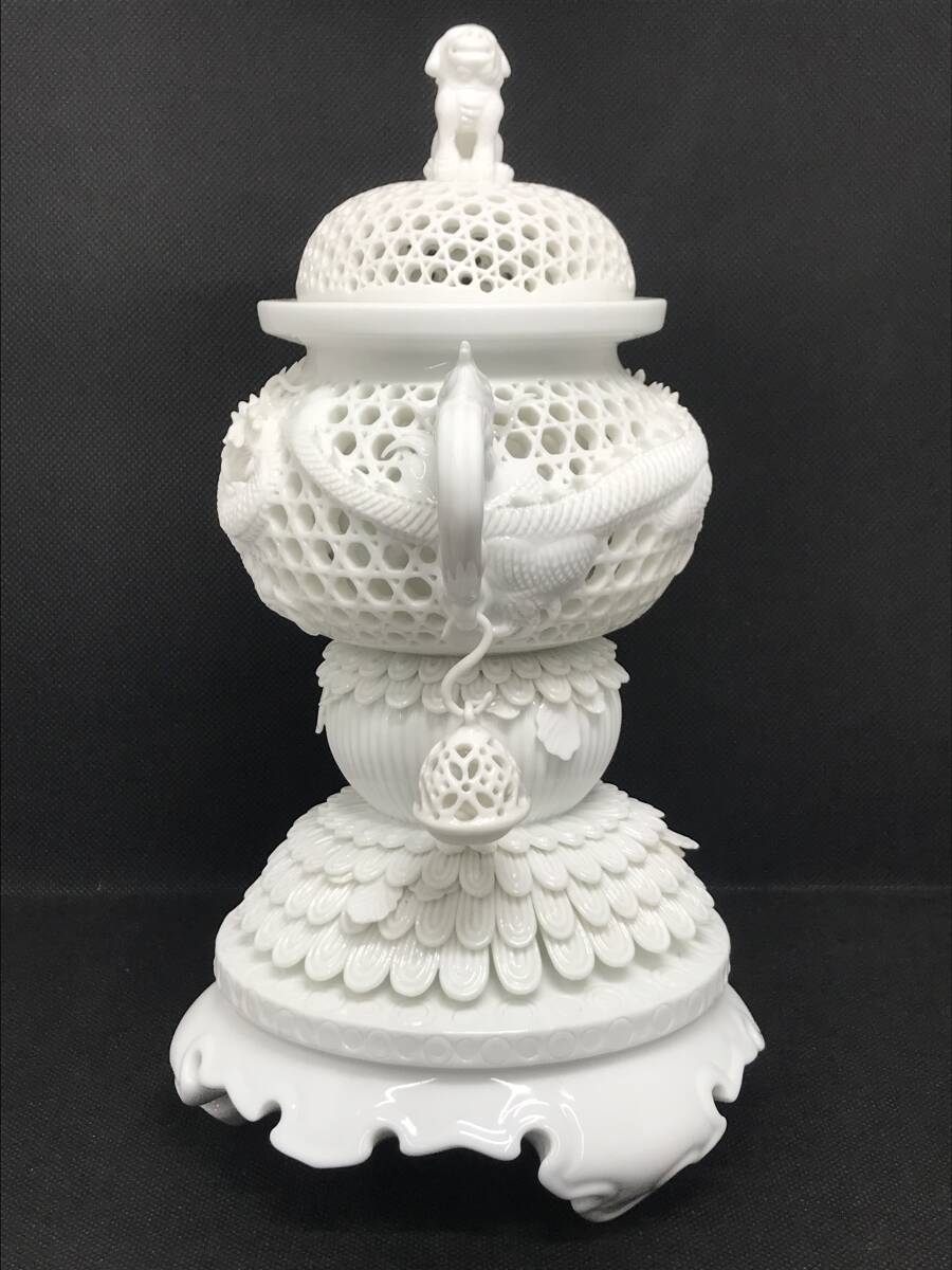 平戸焼 十五代 中里茂右衛門造 白磁 竜巻彫籠目透 獅子蓋 香炉 陶器 陶磁器 陶印 在銘 陶芸 伝統工芸品 美術品 古美術品 趣味 コレクター