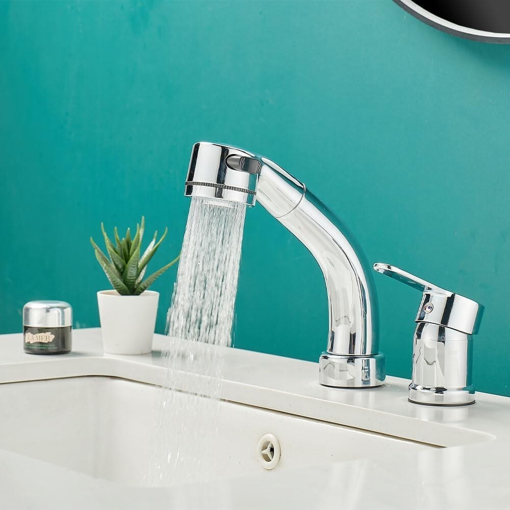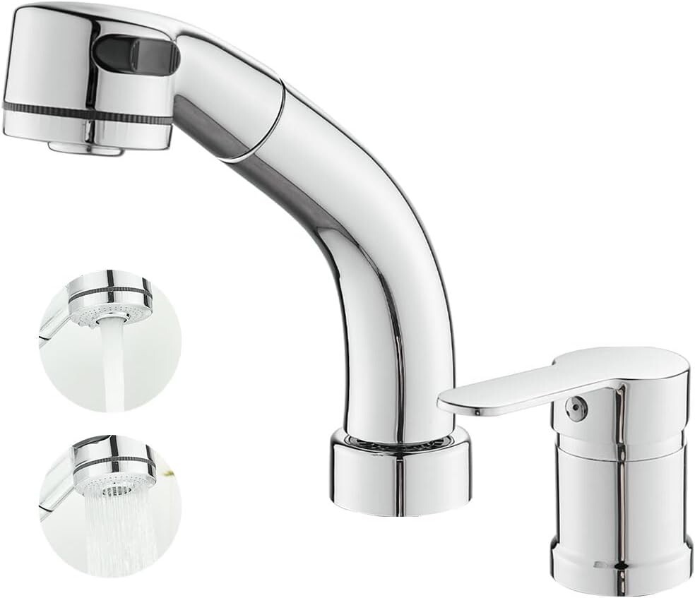 【新品送料無料】KOLERTHR 洗面用水栓 洗面台蛇口 シングルレバー混合水栓 ツーホール式水栓 台付き2穴 ホース引き出し式