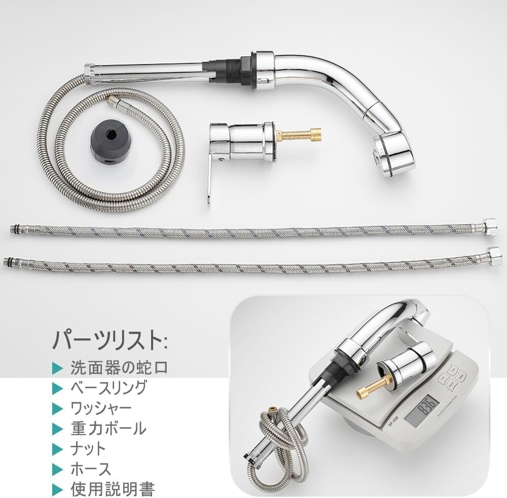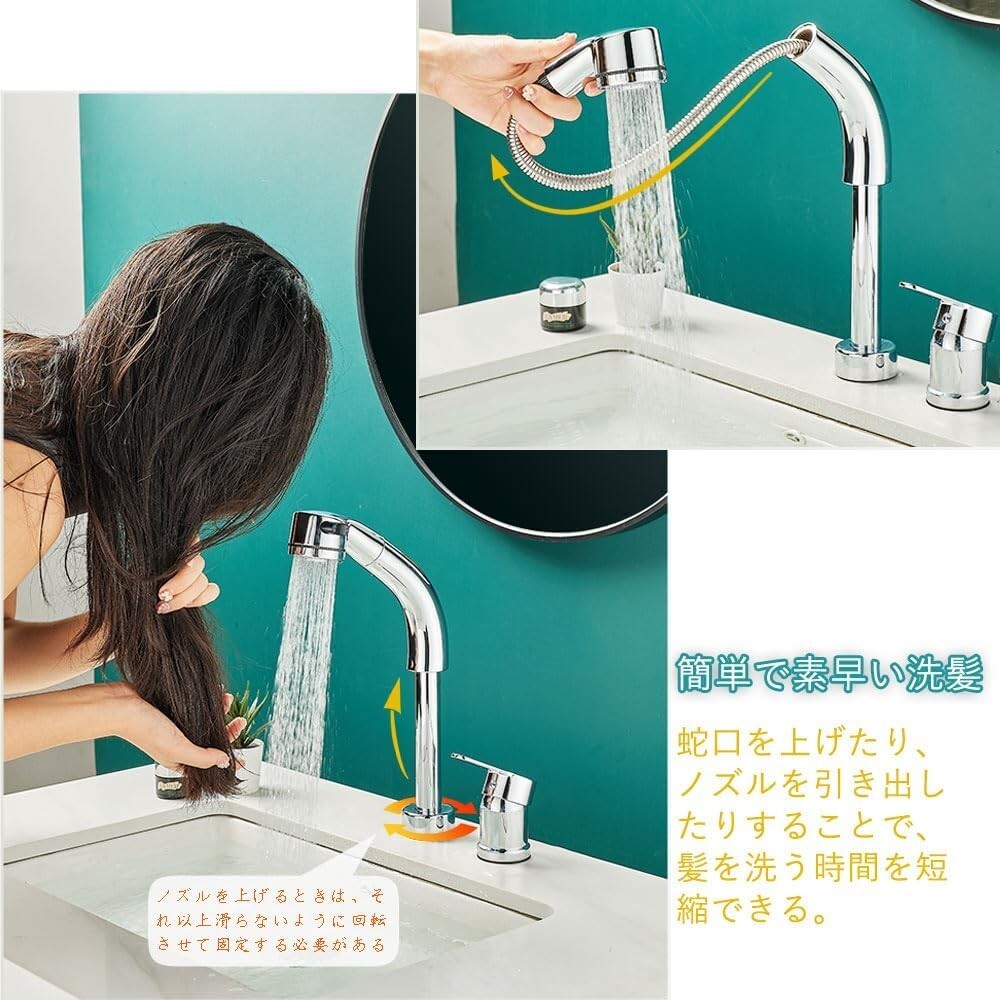 KOLERTHR 洗面台蛇口 洗面用水栓 ツーホール式 シングルレバー混合水栓 台付き2穴 ホース引き出し式 360°回転 吐水口昇降 二重機能スプレイヤー 水栓金具 洗髪用 取り付けホース付き クロム