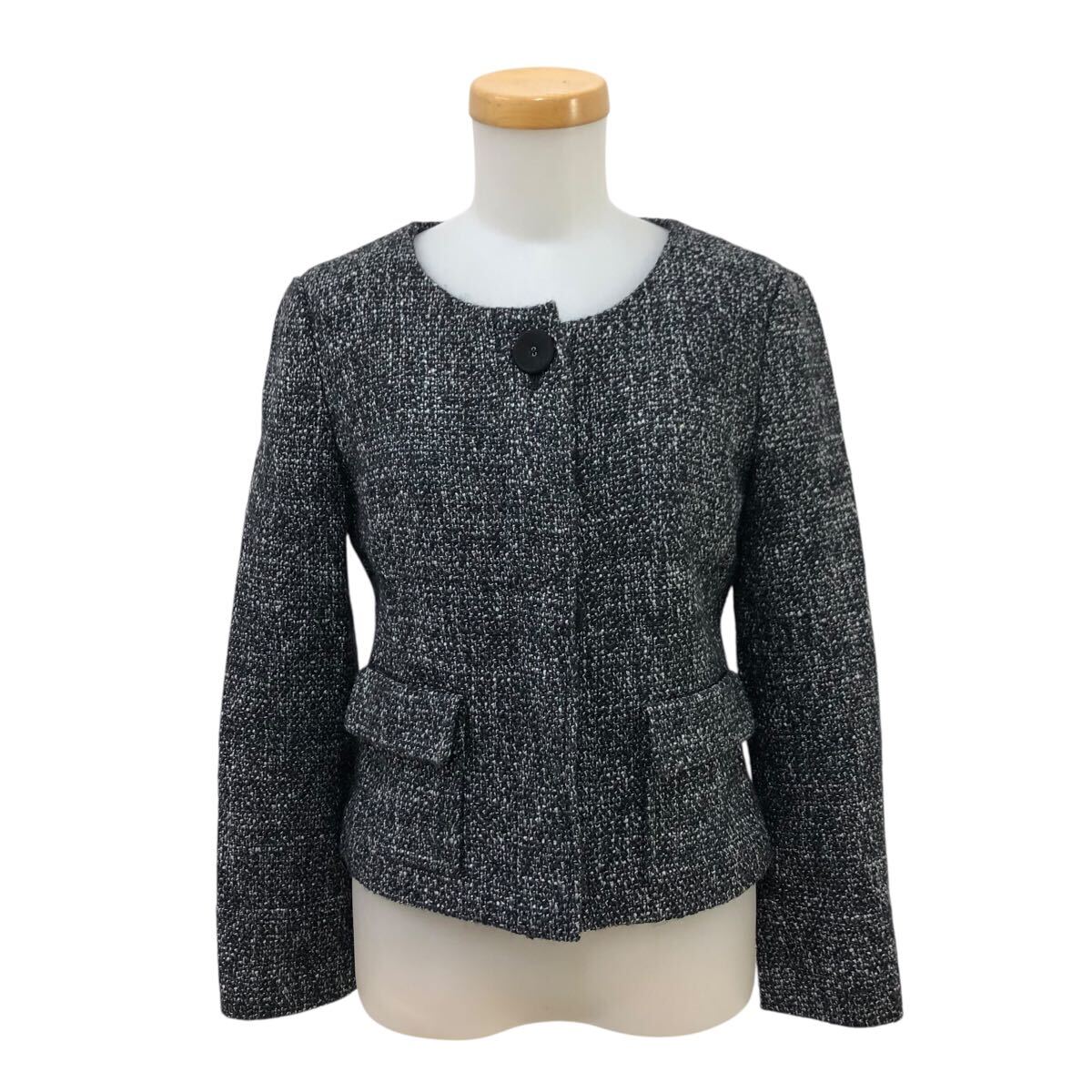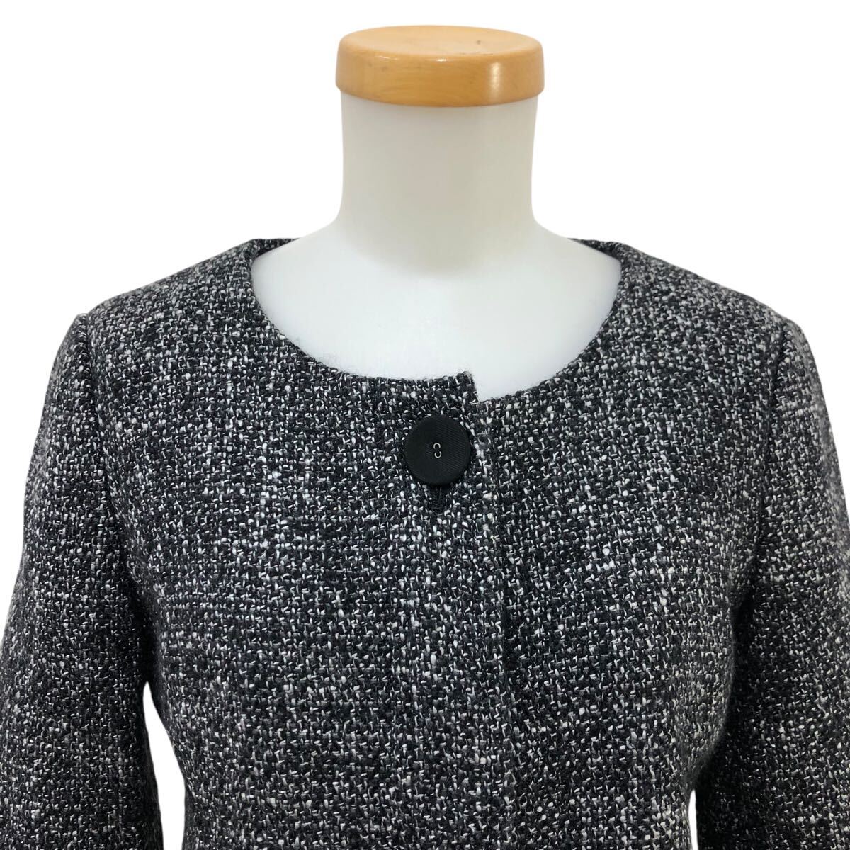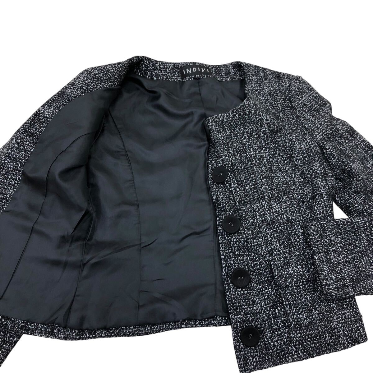 11Nm333-61 INDIVI インディヴィ ノーカラー ツイード ジャケット 上着 羽織り トップス アウター ブラック系 レディース 07 日本製