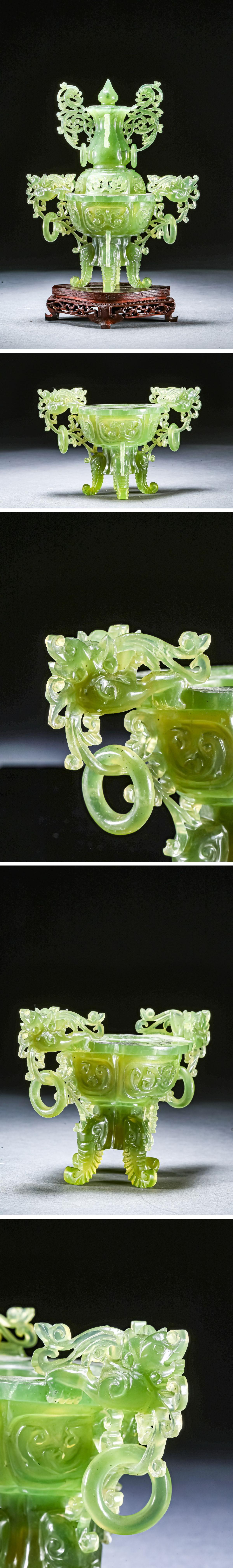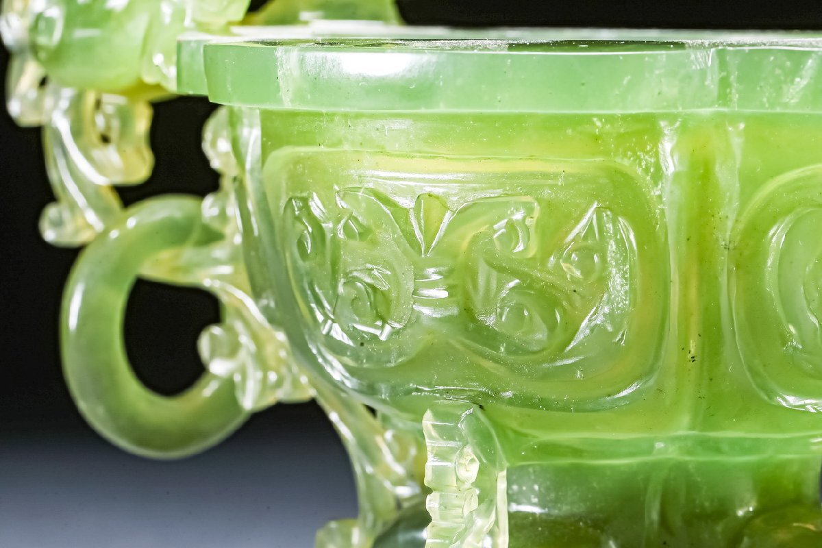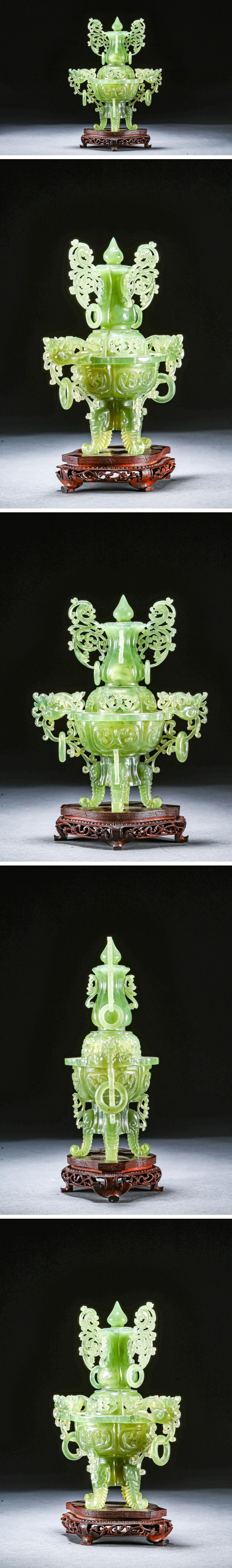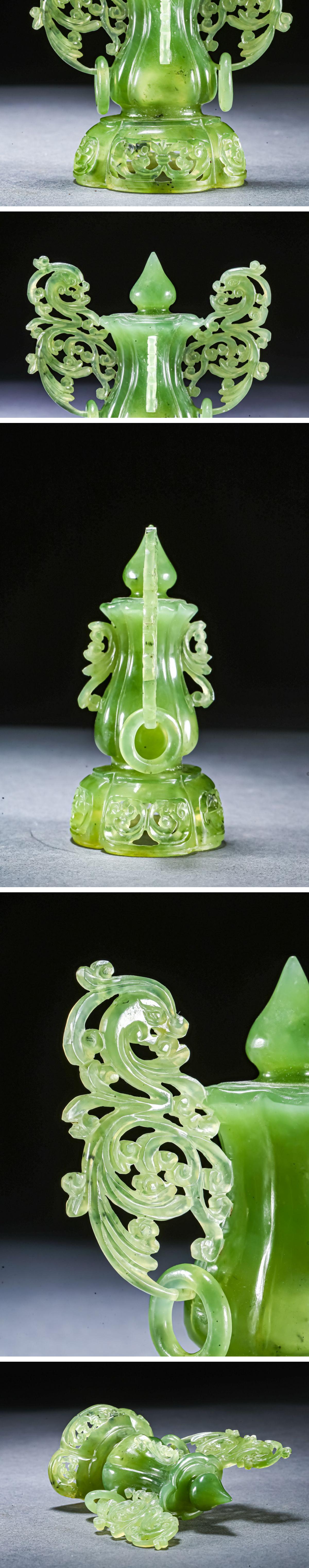 【雲錦】某有名オークション購入 時代物 中国伝来 碧玉透かし彫り薫爐 古置物 古美術 時代コレクション1225-39S1