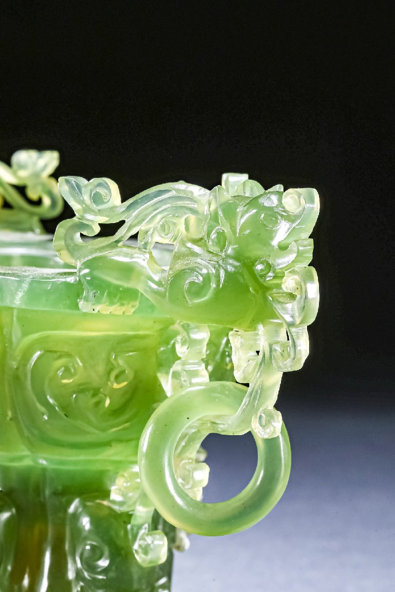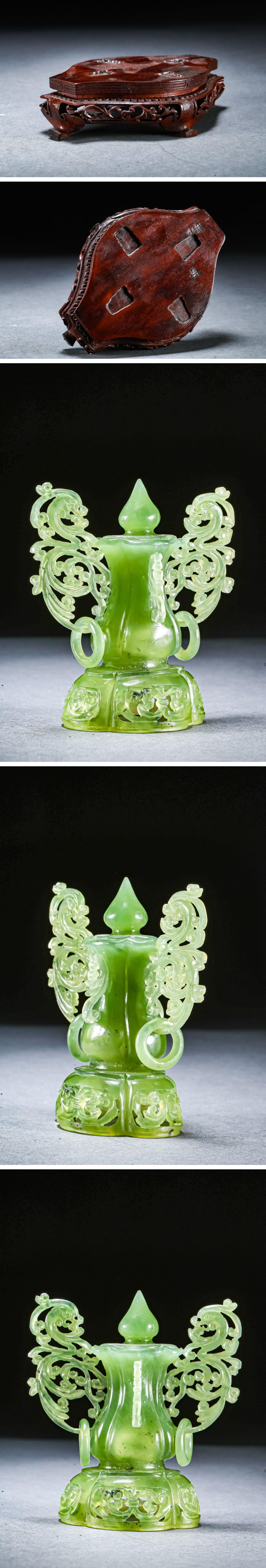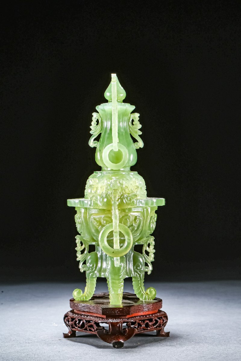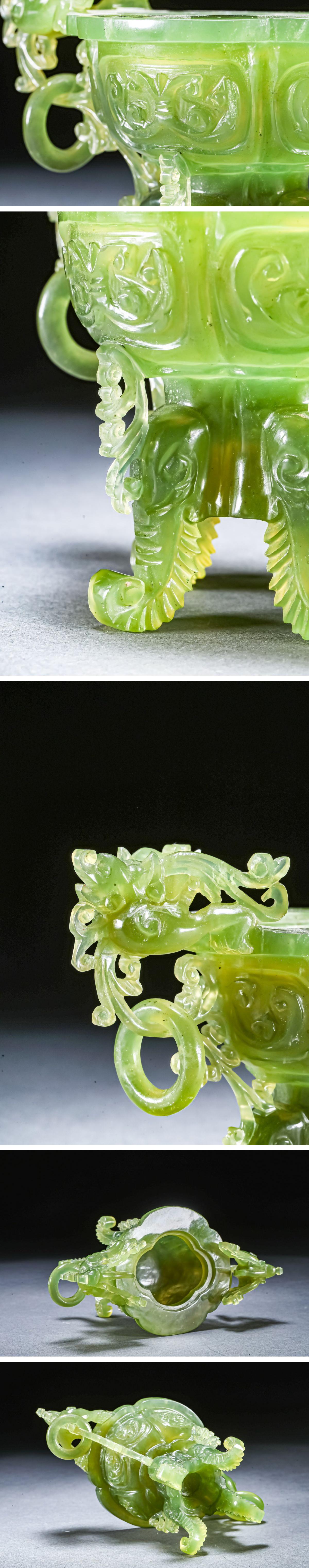 【雲錦】某有名オークション購入 時代物 中国伝来 碧玉透かし彫り薫爐 古置物 古美術 時代コレクション1225-39S1