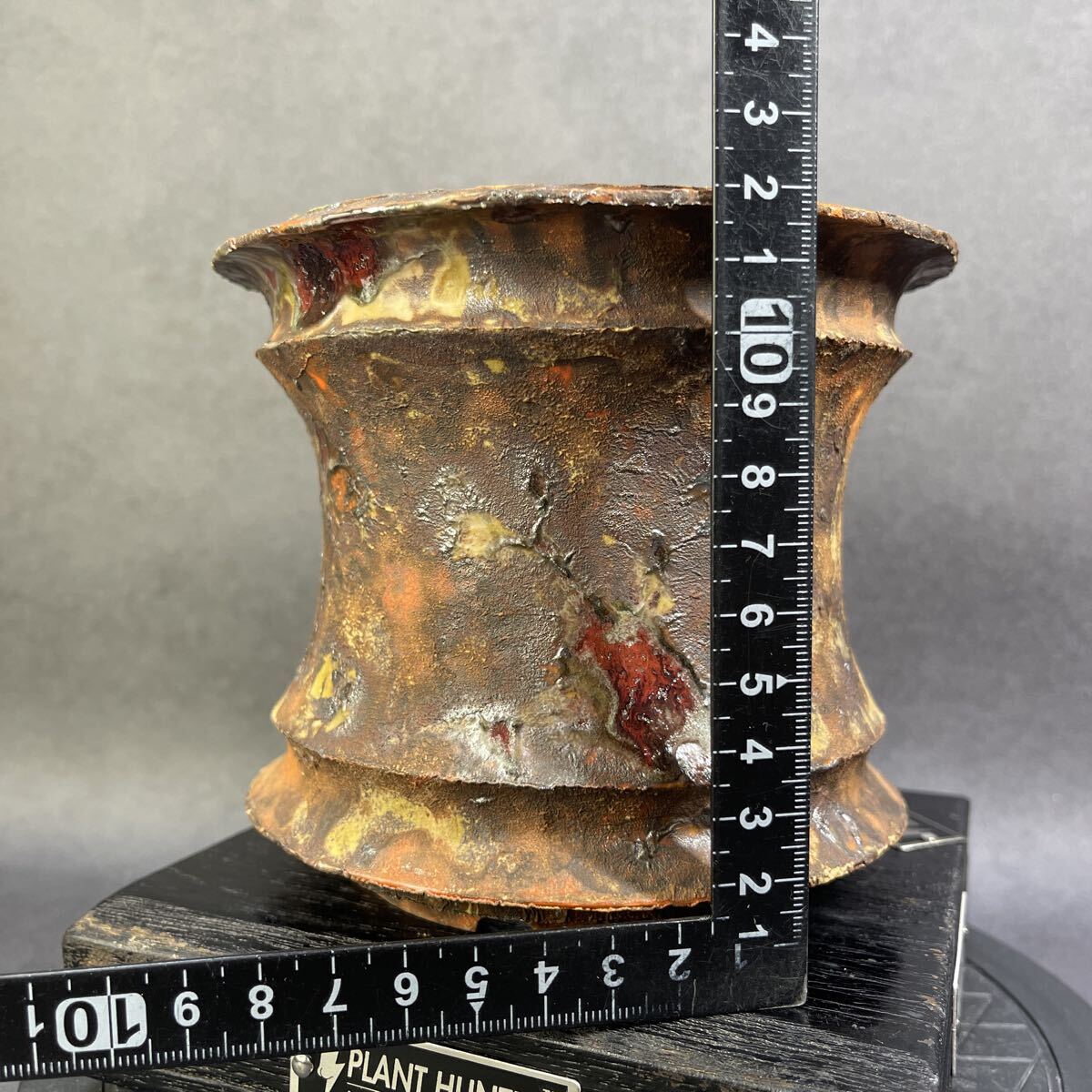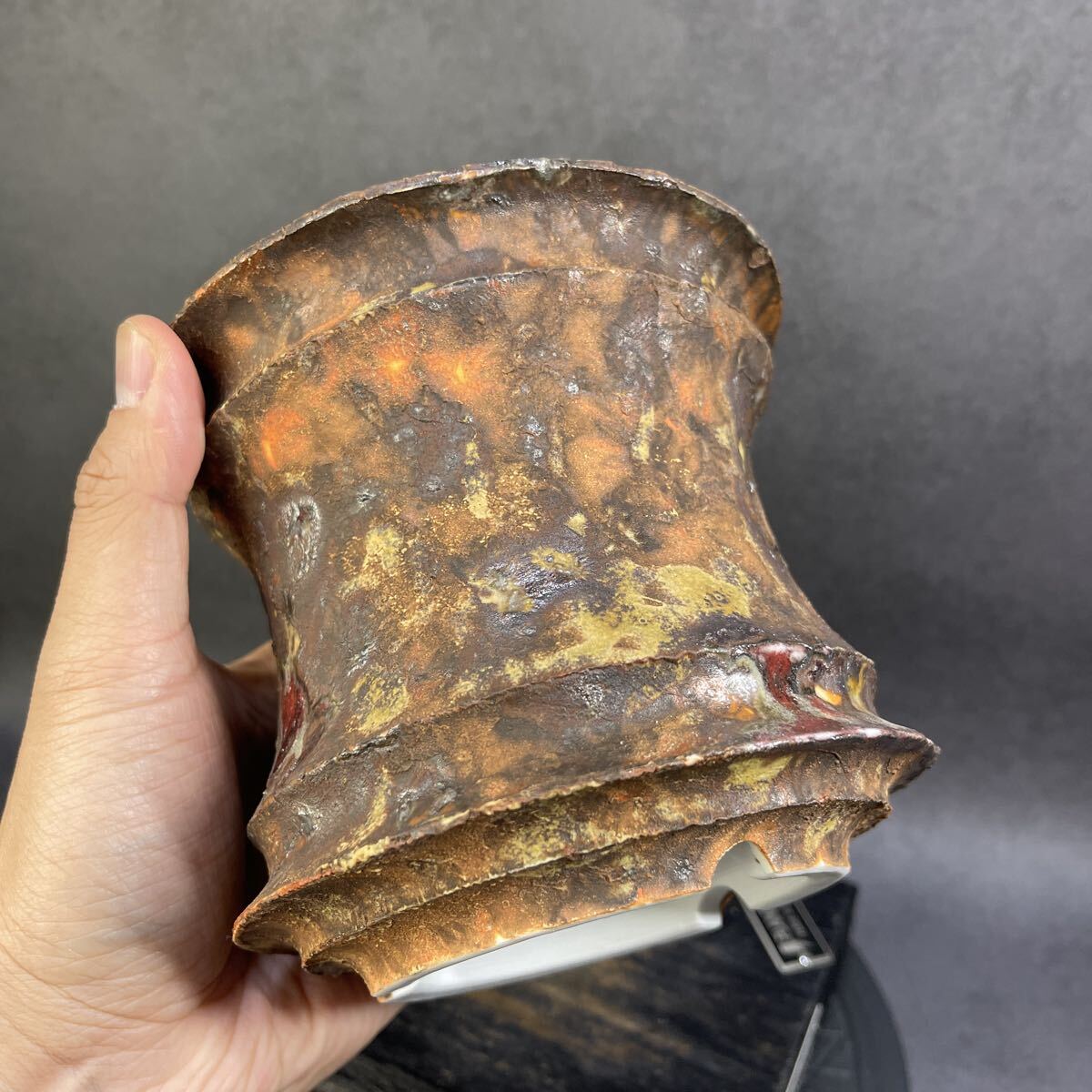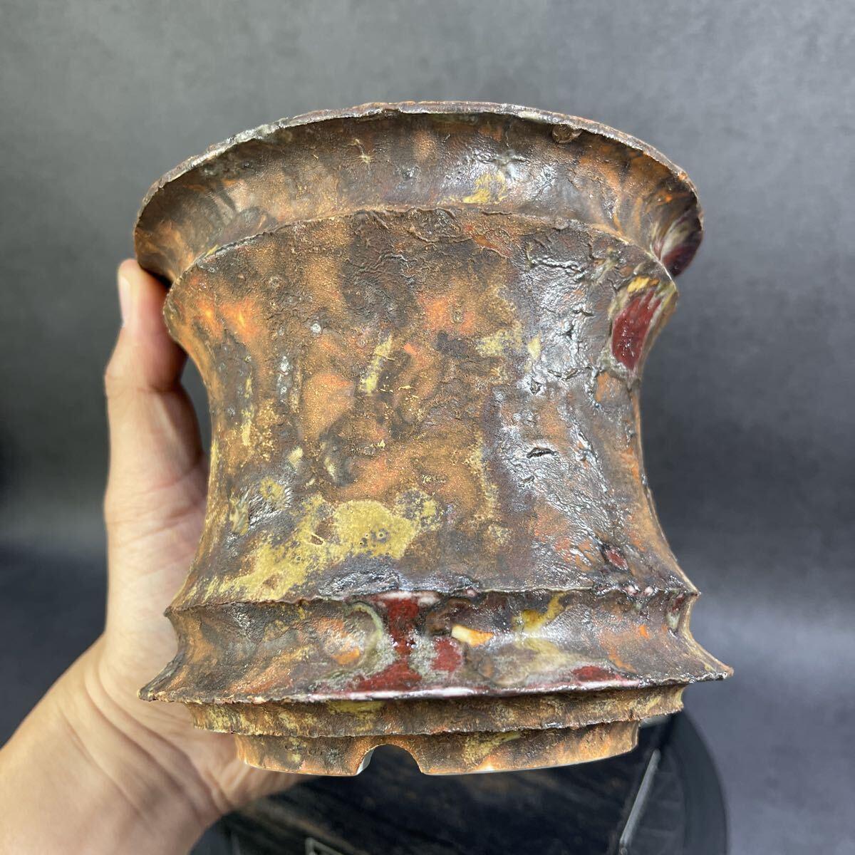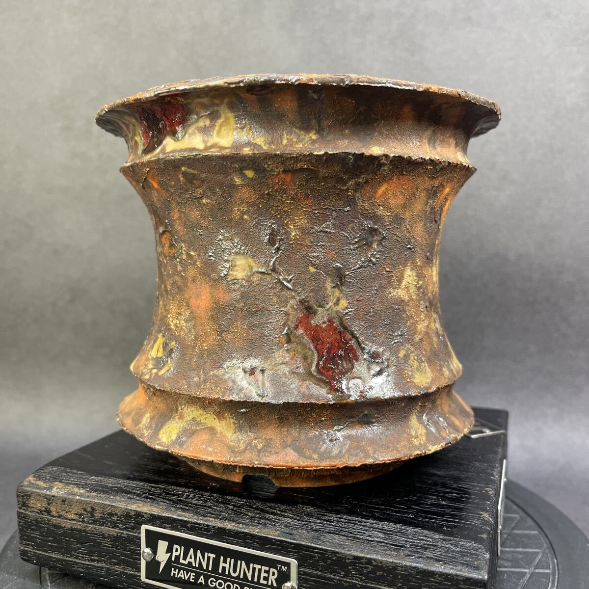 無釉の黒土に多層の泥釉を重ね、高温還元で焼き締めた「焦岩肌」シリーズ。