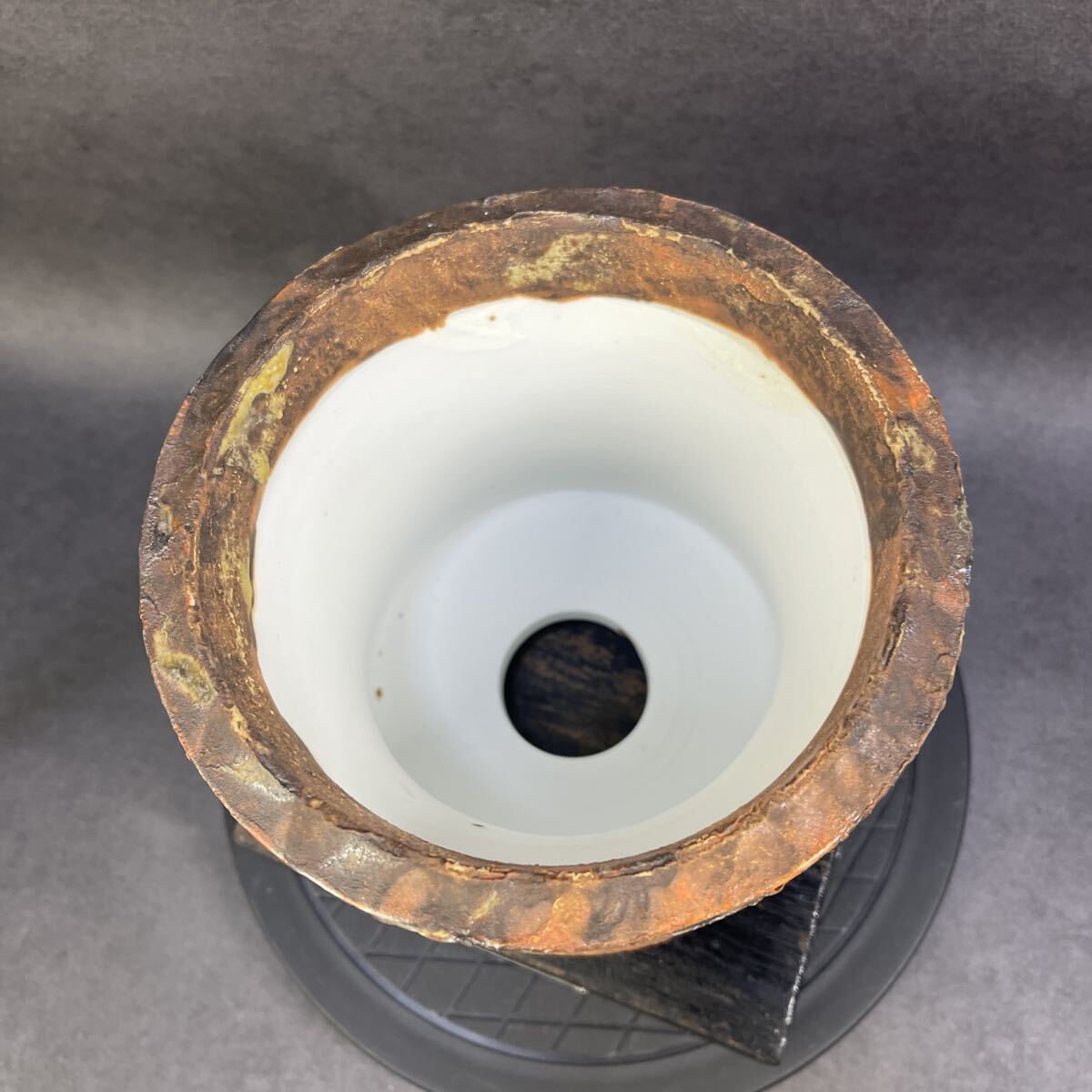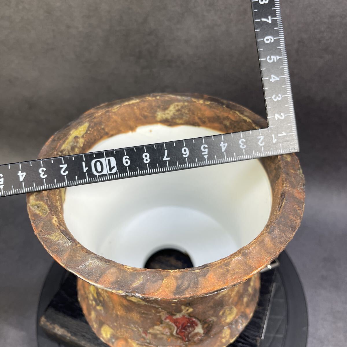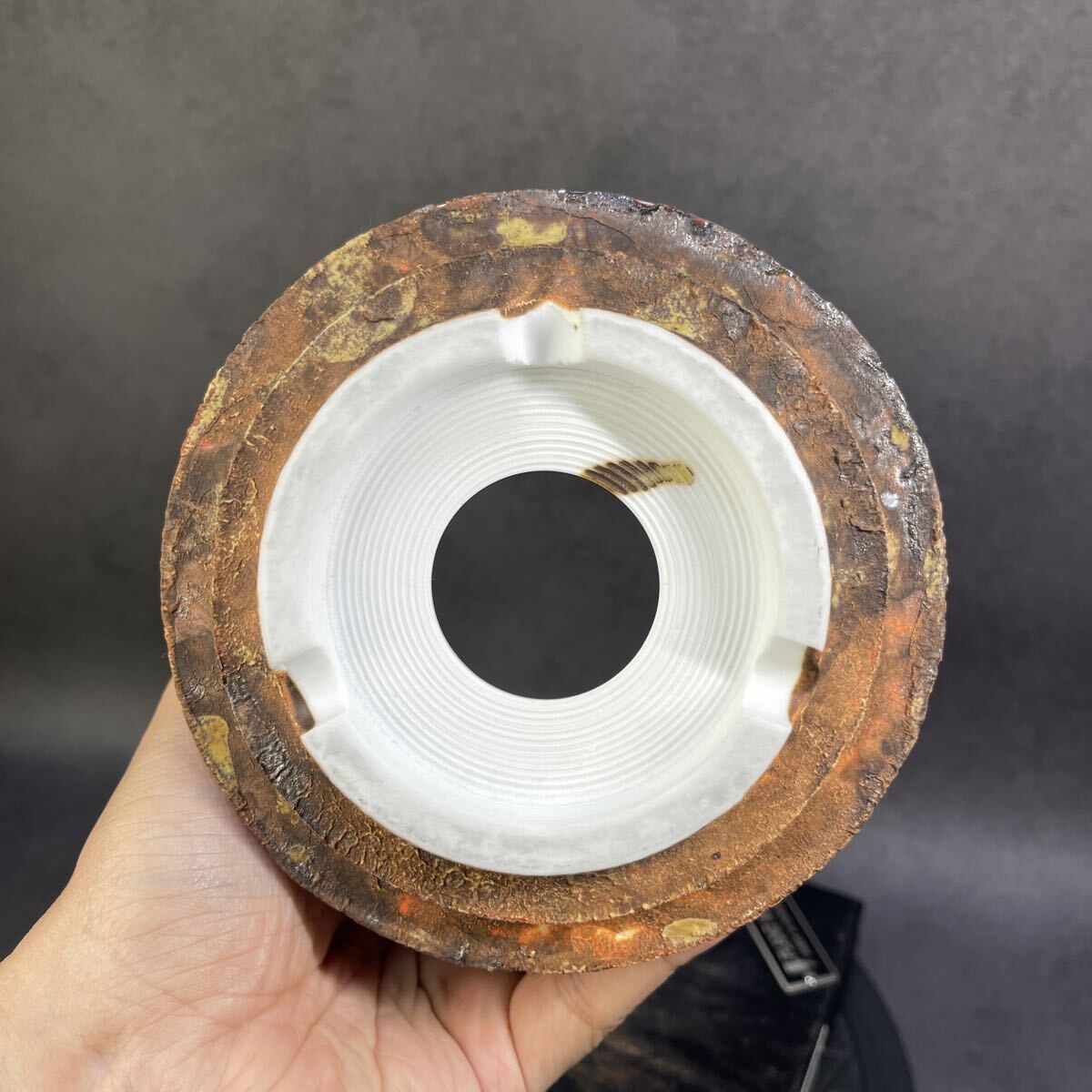 外側は荒れた溶岩肌、内側は白釉で仕上げ、