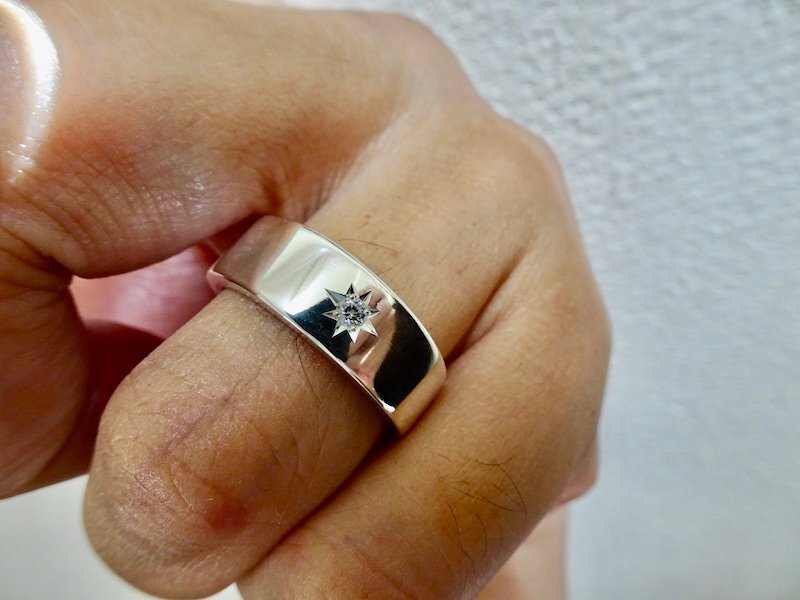 | ■ ■ 商品名: 『一つ星2.3mmダイヤ、幅7mm、平打リング』 ■ ■ |