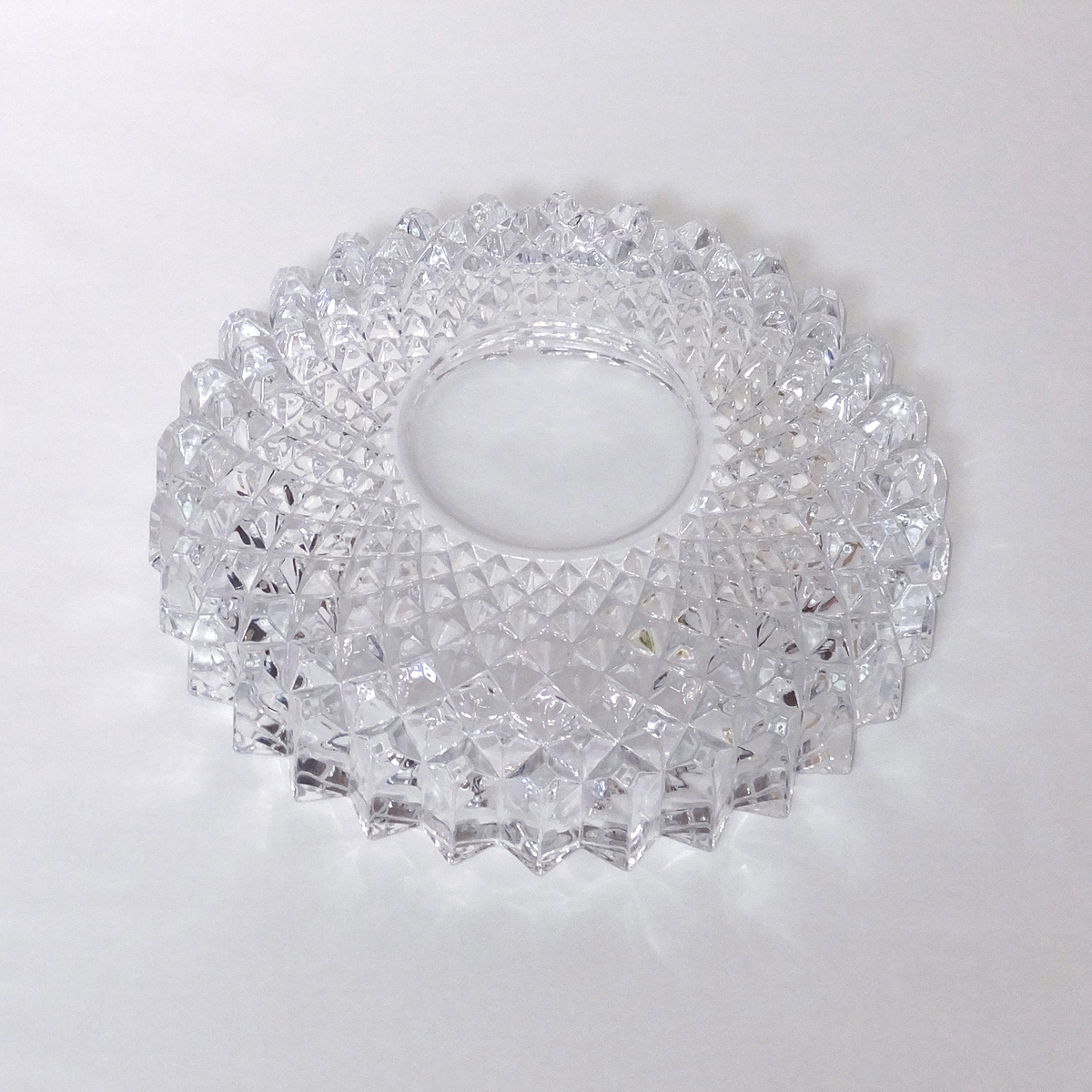 保谷クリスタルのクリスタル灰皿です。25年ぐらい前に頂いた物らしく、これまで自宅で保管しておりました。 未使用品です。灰皿本体はきれいな状態ですが、外箱は汚れなどの劣化が見られます。ご理解いただける方のみご入札お願いいたします。 ◆本体サイズ:直径20×高さ5.5cm ◆本体重さ:1389g |