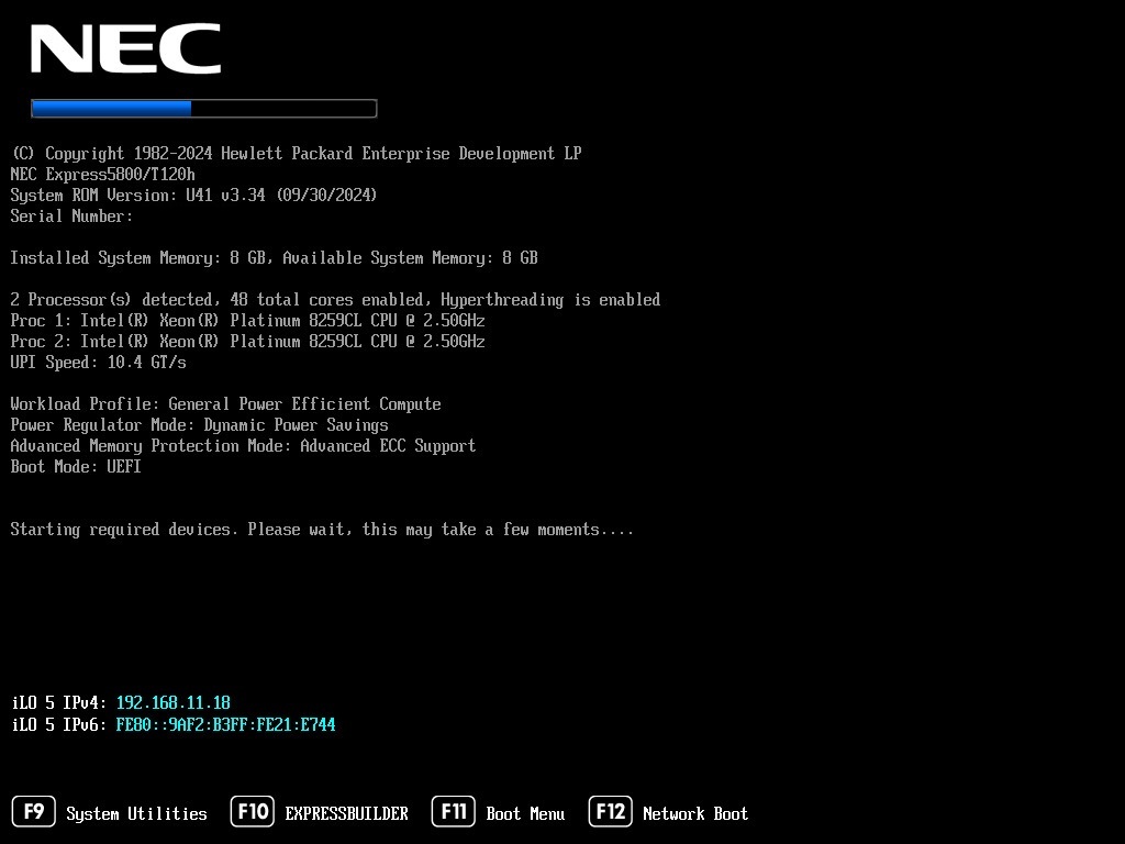 筐体のデザイン(白基調)・iLOとブート画面のデザインのみ、NECのカスタム仕様となっています。ご理解のほどよろしくお願いいたします。