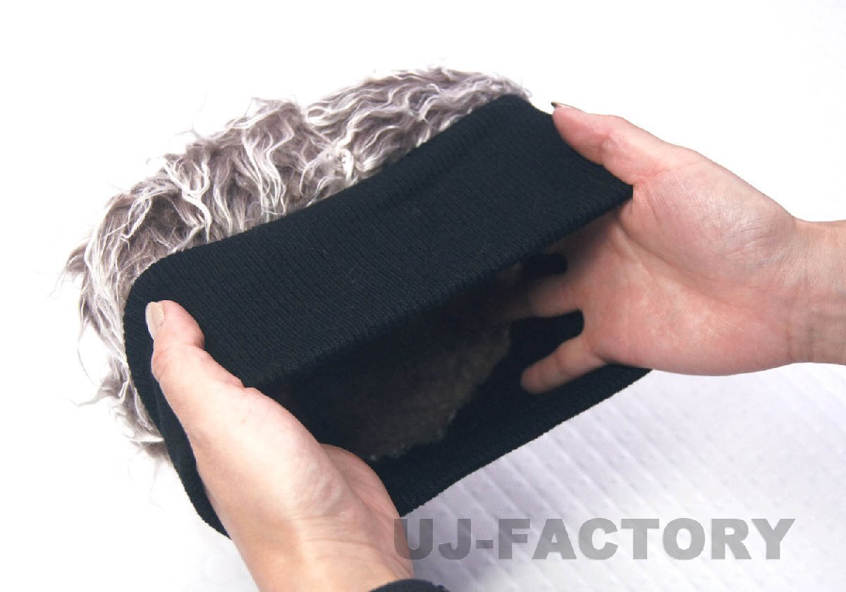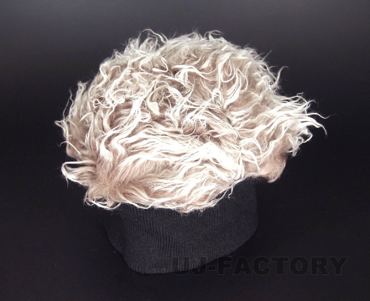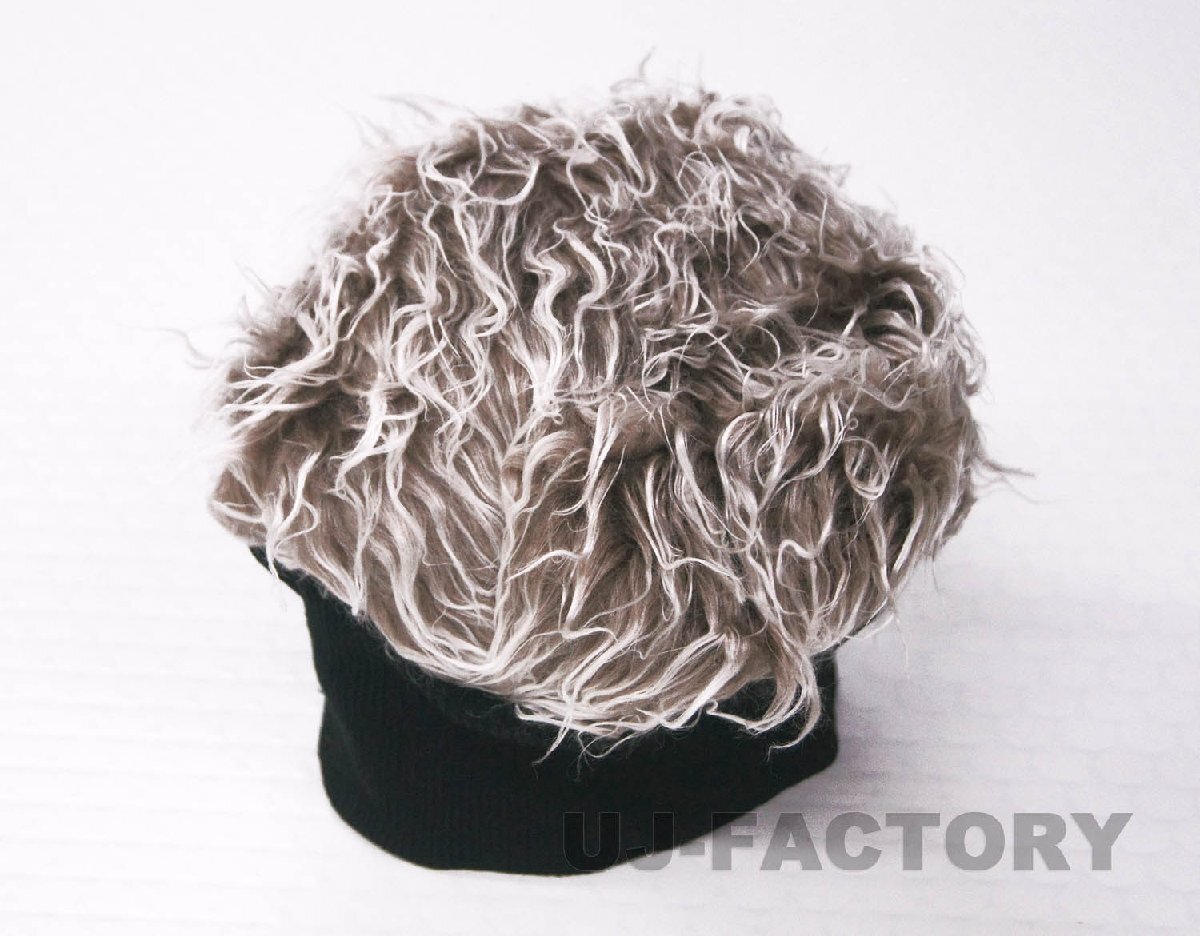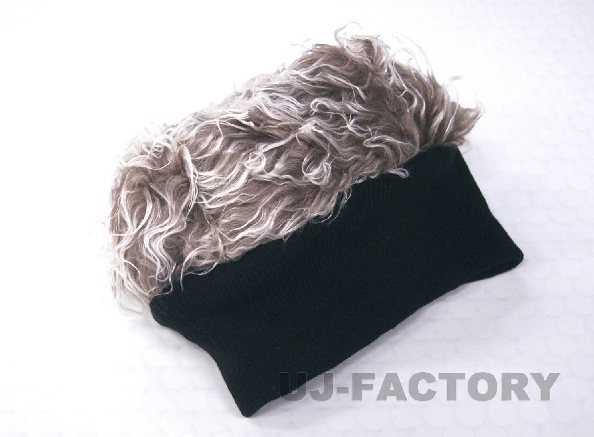 ヘッドバンドウィッグ ブラック×ブラウン 男性用 カジュアル ウィッグ風帽子 メンズ 髪の毛 フレアーヘアー ニット キャップ ぼうし