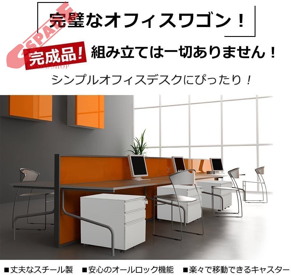 • 【POINT1 高品質のオフィスワゴン】■完全完成品で組立不要! ■丈夫なスチール製! ■安全・安心のオールロック! ■キャスター付き移動も楽々! ■超静音のスライドレール! ■収納スペースたっぷり!