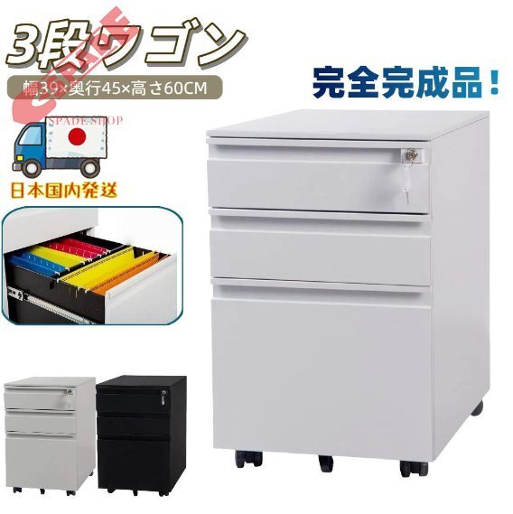【国内発送】サイドワゴン 3段オールロック 幅390×奥行450×高さ600mm スチール製 ペントレー シリンダー錠 完全完成品 組立て不要