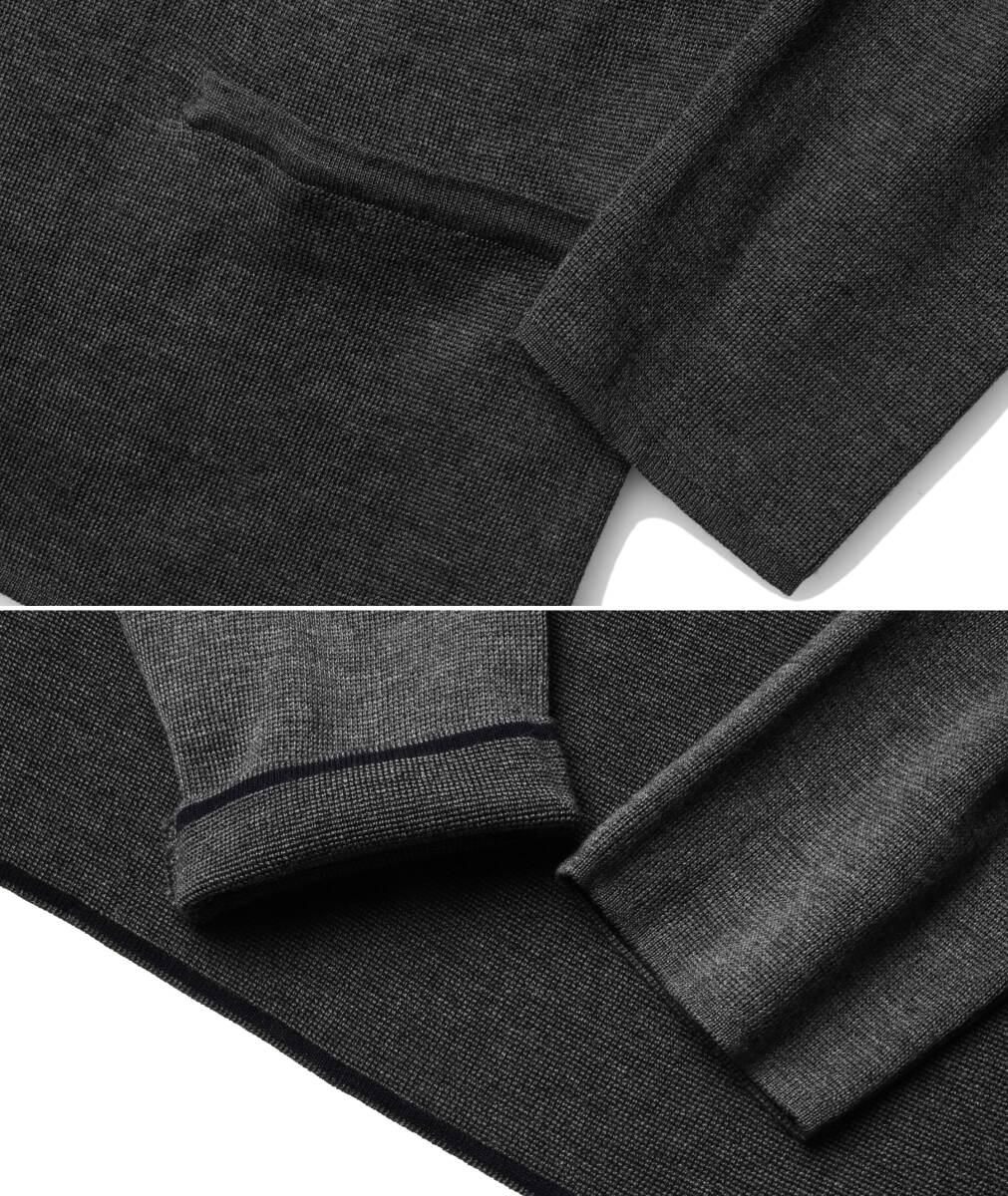 布帛のようなキレイな見た目なので、オフはもちろん、ビジネスシーンでも活躍してくれるはずです。 また、確かな耐久性を確保しながらも、やや薄手の仕上がりなので、今時期や春先にTシャツ一枚の上にサラリと羽織ってと、 冬になったらコートとレイヤードしてなど、長いシーズン楽しめます。 しっかりした編地は体に馴染みやすく、一日中羽織っていても疲れ知らずです。 本当に価値のある、使える一着と言えます。