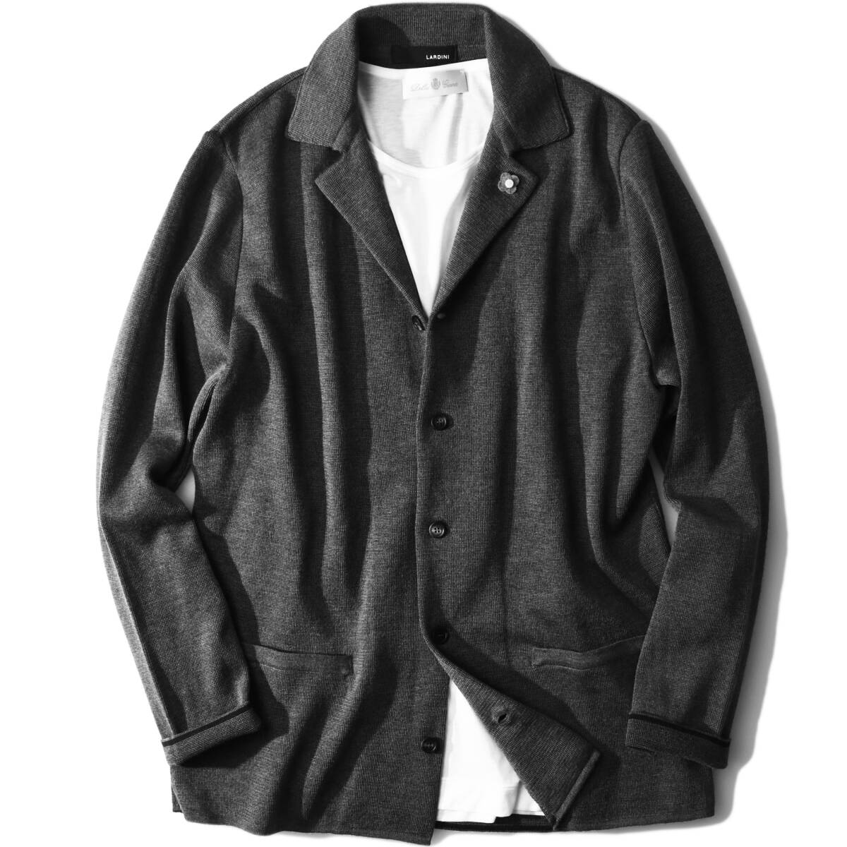 ニットジャケットの定番生地¨ミラノリブジャケット¨も、ニットジャケットのパイオニア<ラルディーニ>なら、 「快適」x「品格」が高次元で融合し、手に触れた瞬間、納得な仕上がりに。 素材には、ライトウエイトのミラノリブ(ウールニット)によって、快適な着心地を実現。 それでいて巧みなパターンと縫製により、着用するとしっかりテーラードの顔つきとなるのもいいところ。 大人のニットジャケットの模範解答です。