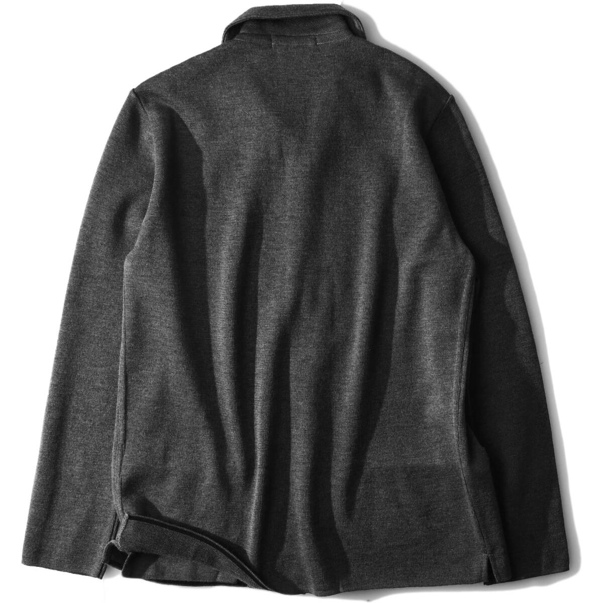 丁寧なニッティング技術、布帛並に耐久性の高いミラノリブなので、ニットにありがちな型崩れの心配もありません。 通常のニットよりも、¨保形力¨が高いので形が綺麗に形成されシルエットの良さをダメ押し。 編みのテンション、袖の緩やかな絞り、エッジの仕上げ、ロゴ入りの味わい深いロゴ入りの本水牛ボタンなど、 ニットジャケットのお手本となるような仕上がり。