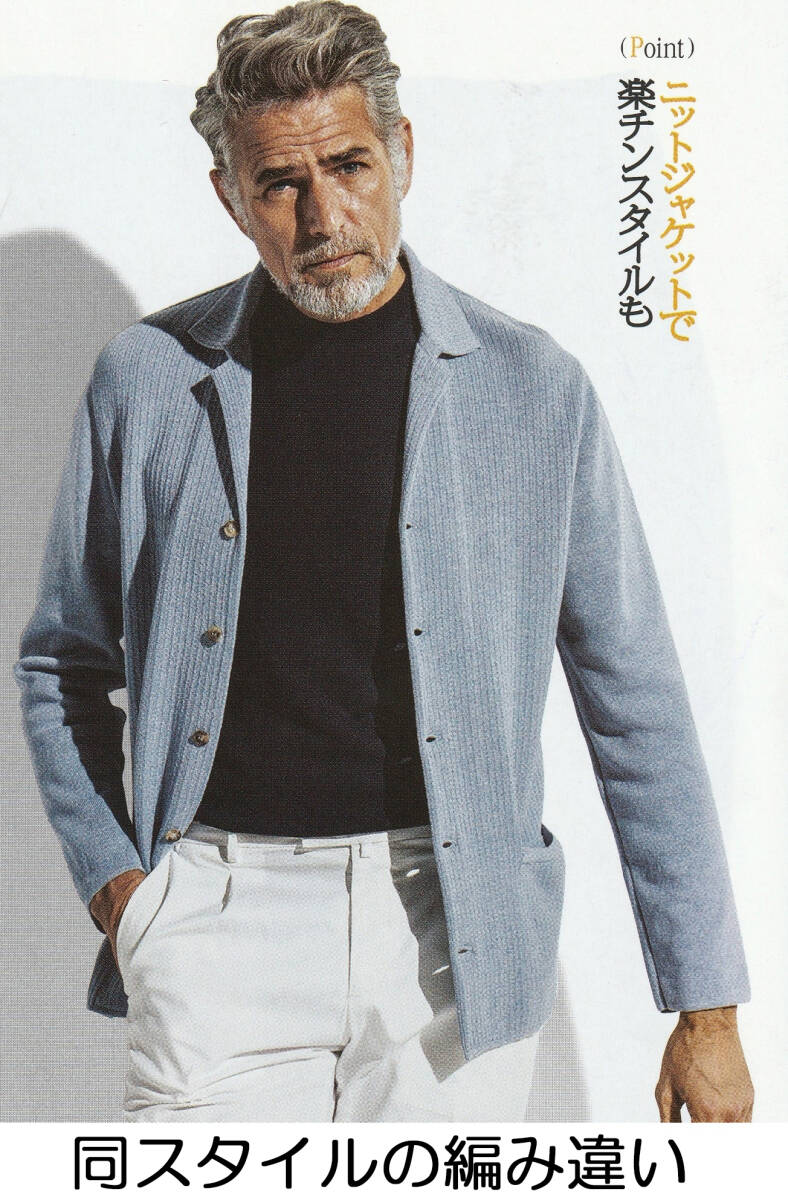 休日のちょっとした外出の際、例えばカジュアルなレストランに行く場合など、 カッチリしたジャケットでは堅苦しくなってしまいます。だからといってカジュアル過ぎる格好も大人には相応しくありません。 そんなとき、こういったニットジャケットが重宝します。